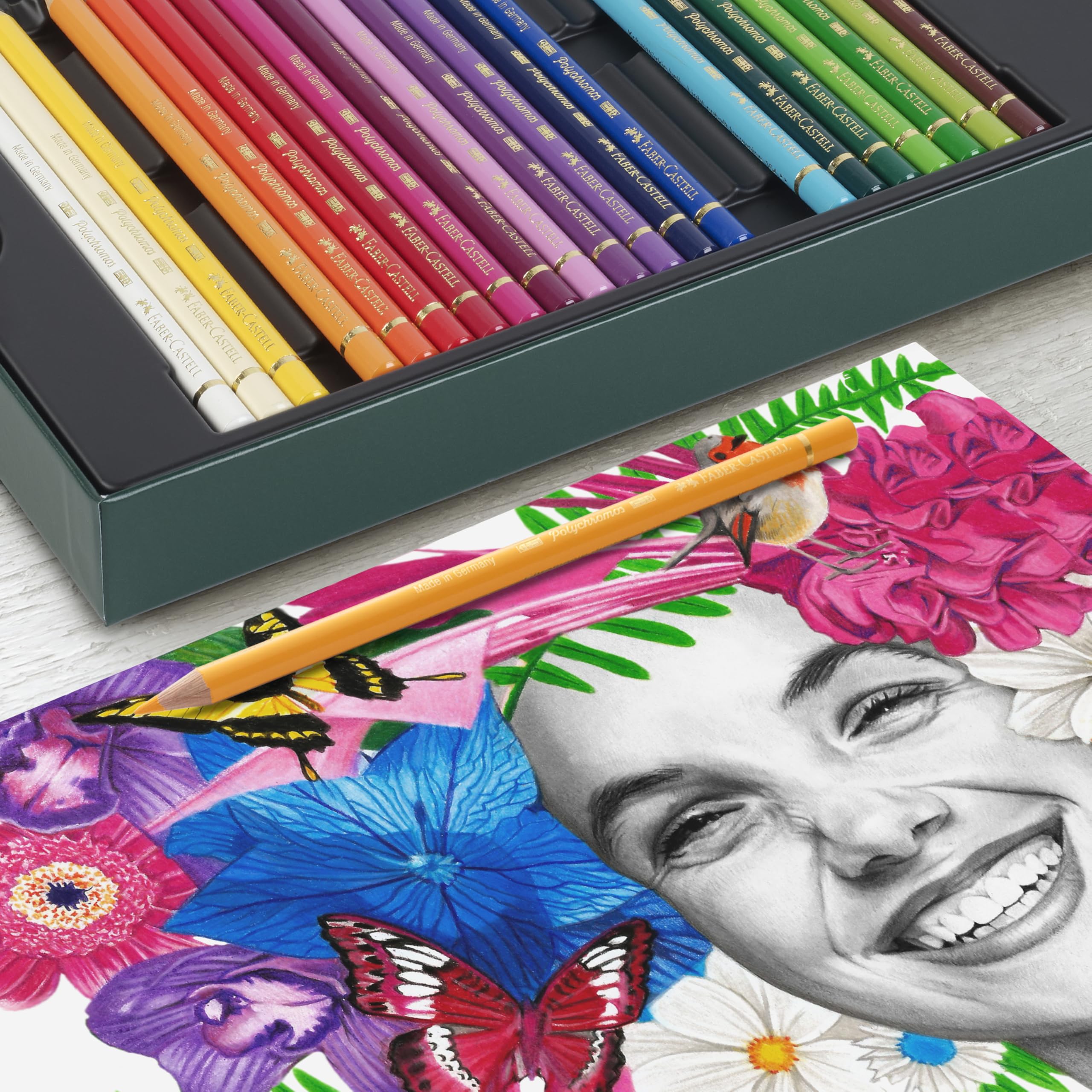 POLYCHROMOS COLORED PENCILS: Faber-Castell Polychromos Colored Pencils offer supreme artist-quality vibrancy and reliability to bring your art to life. These quality colored pencils are infused with premium, acid-free pigments, ensuring exceptional lightfast qualities. Buttery smooth and blendable, the rich, permanent colors are water-resistant and smudge-proof and will not give a waxy bloom to artwork