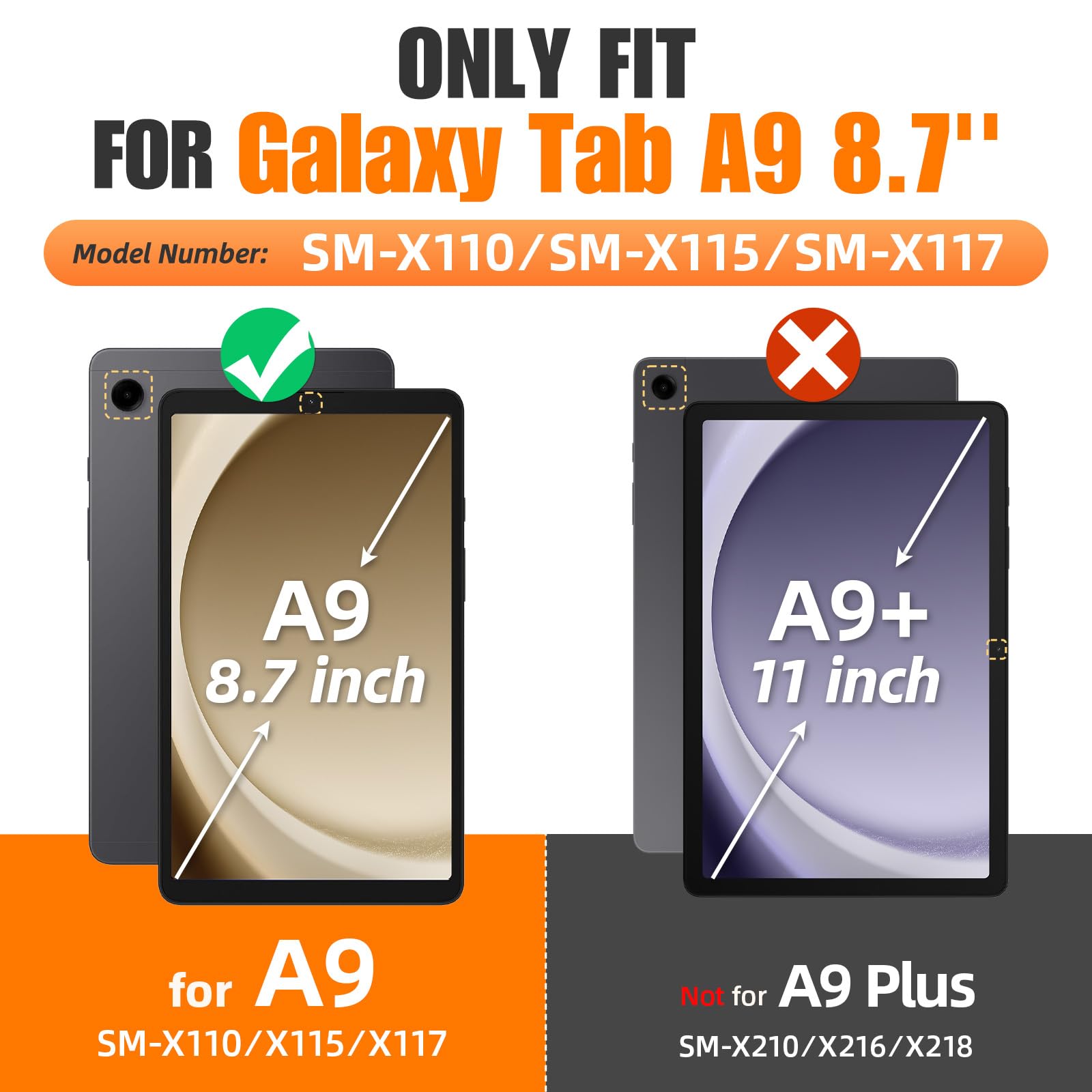 【Compatibility】Shockproof case Only for Samsung Galaxy Tab A9 8.7 inch (Model: SM-X110 SM-X115 SM-X117) 2023 Release. Please confirm your model before purchase