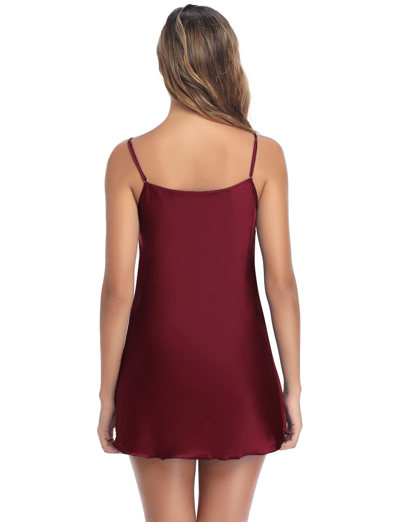 Features: Full slip chemise nightgown sleepwear with adjustable spaghetti strap to create a casual and sexy look, deep v neck, ruffle hem,a-line style, simple and stylish designs make this satin mini dress looks more elegant and charming