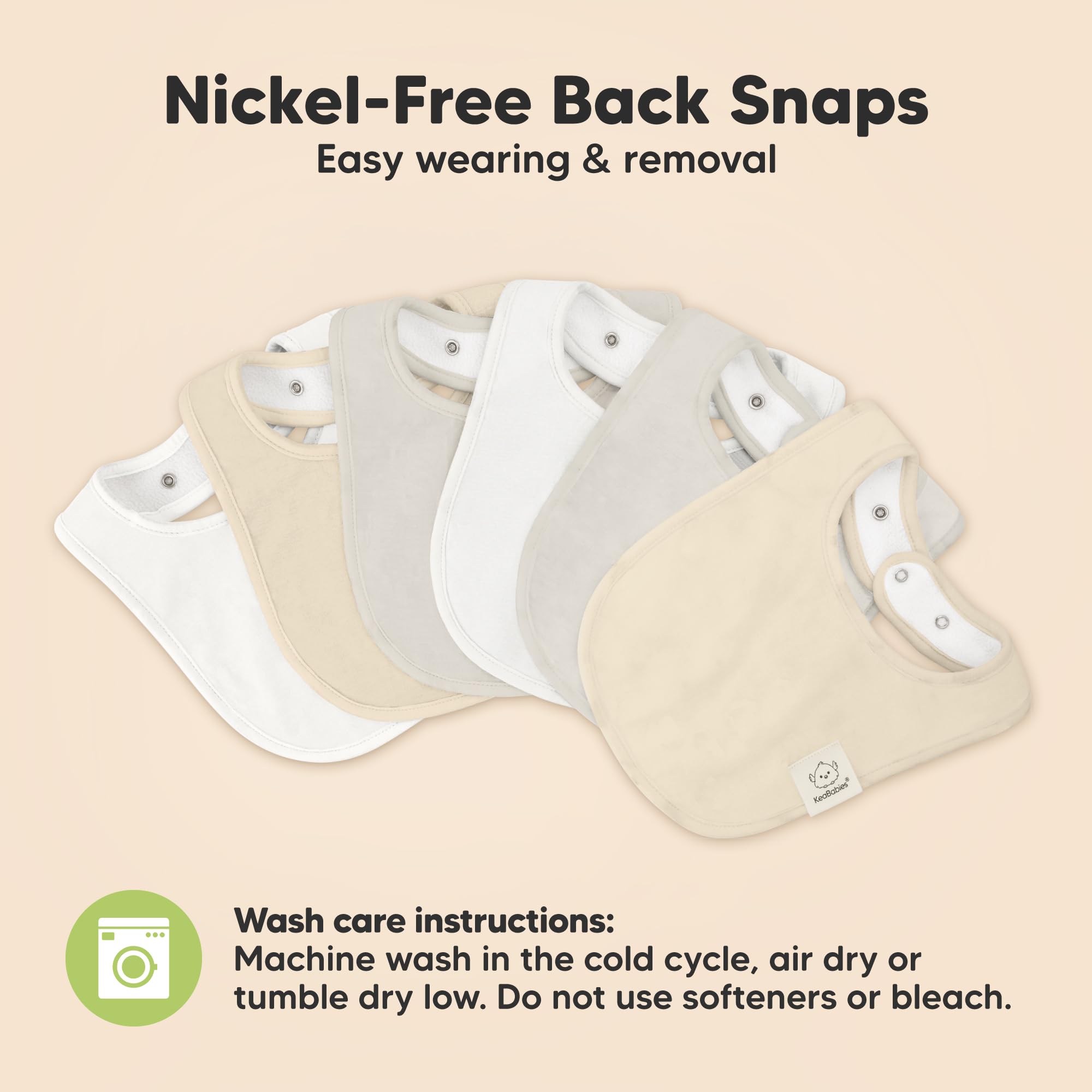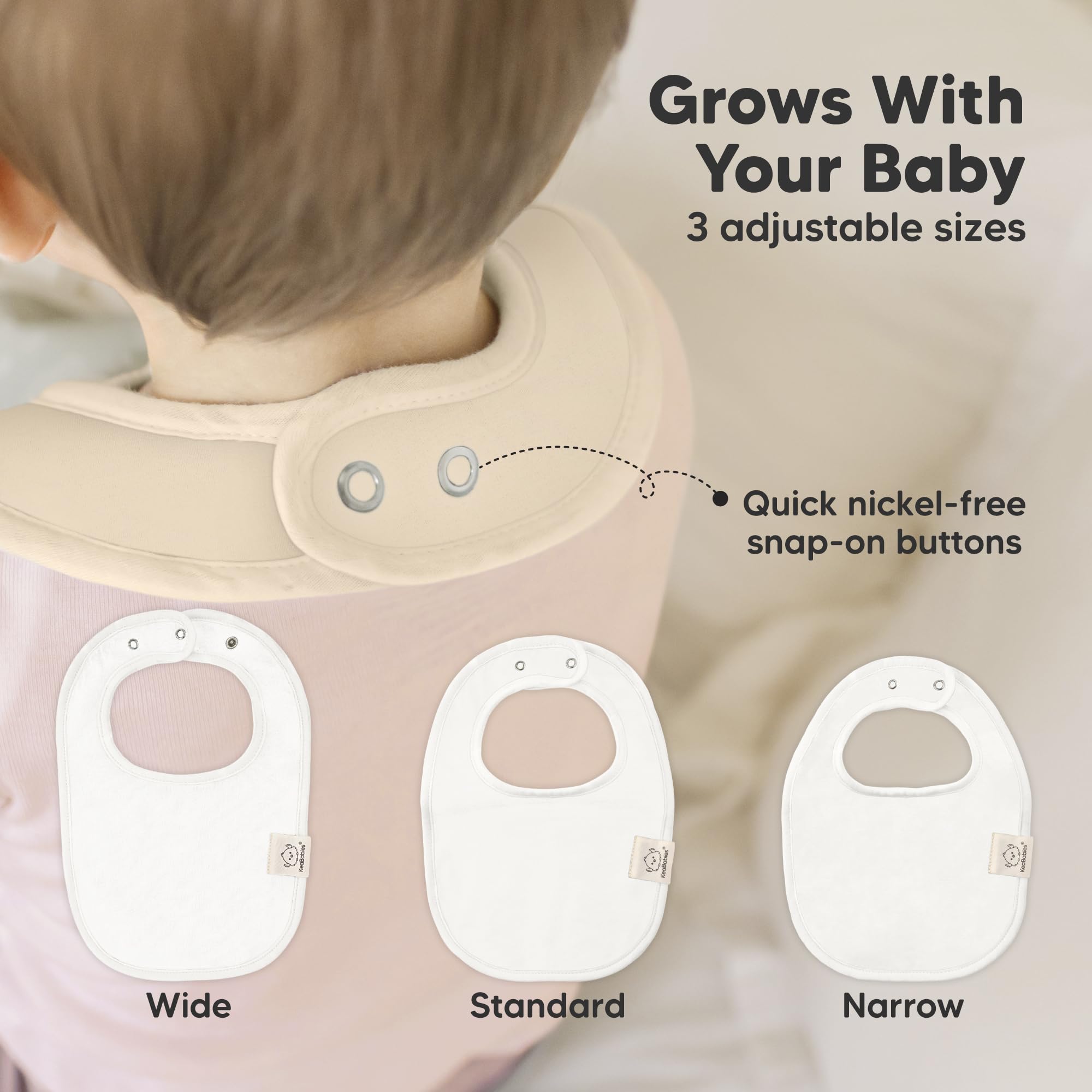 3 Adjustable Size With Soft Seams - With 2 sets of easily fasten nickel free snaps, you can adjust the girl and boy bibs according to your baby’s neckline. The soft wrapped organic cotton seams provide extra comfort for your baby and they won’t feel a thing while having the baby cotton bibs on. Suitable for newborn babies up to 24 months.