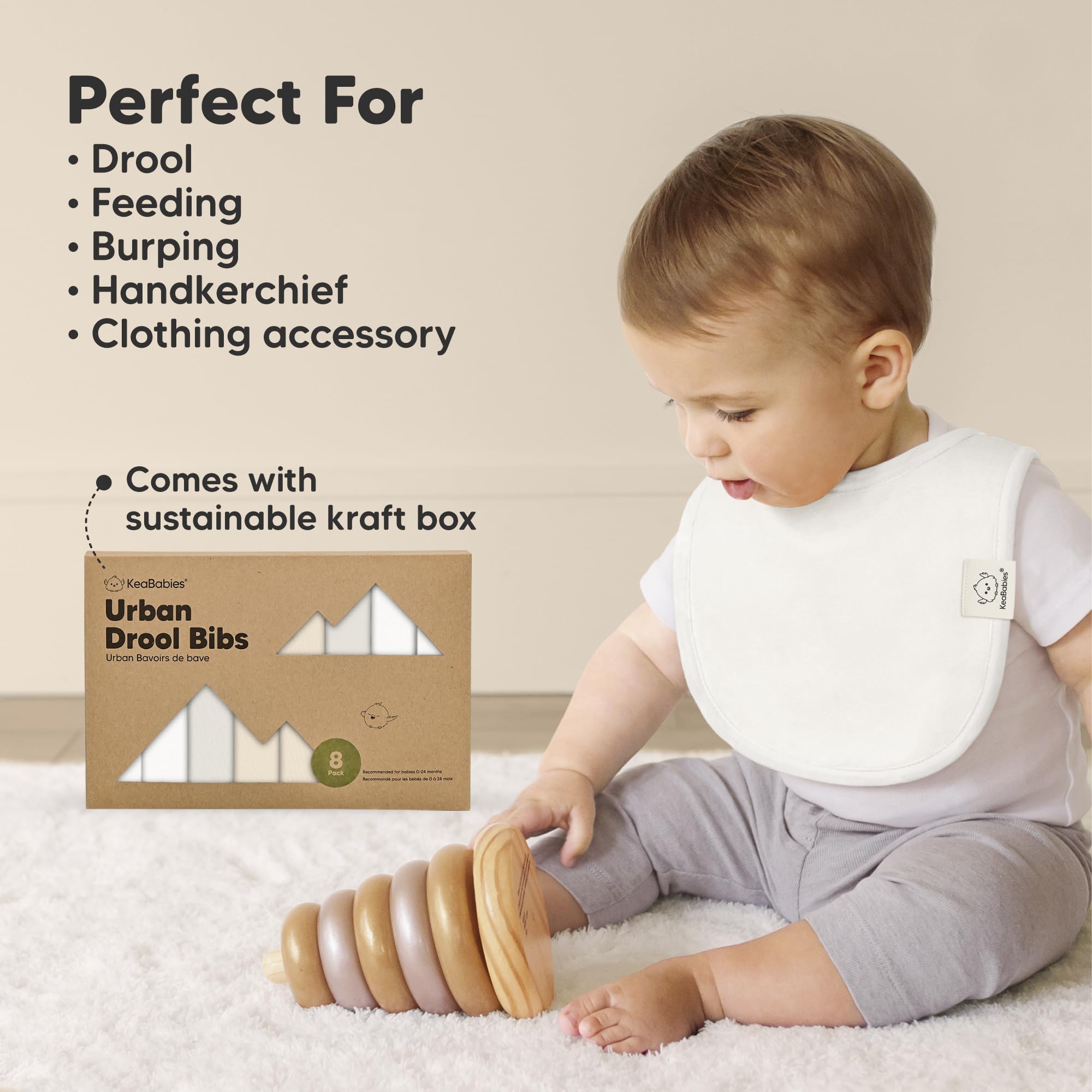 8-Pack Cute and Fun Baby Bibs for Boy and Girl - Our organic baby boy bibs and girl bibs are exclusively designed by KeaBabies to ensure that your baby never runs out of styling options. Our baby bibs are unisex and easy to match, making them a fuss-free teething baby essential.