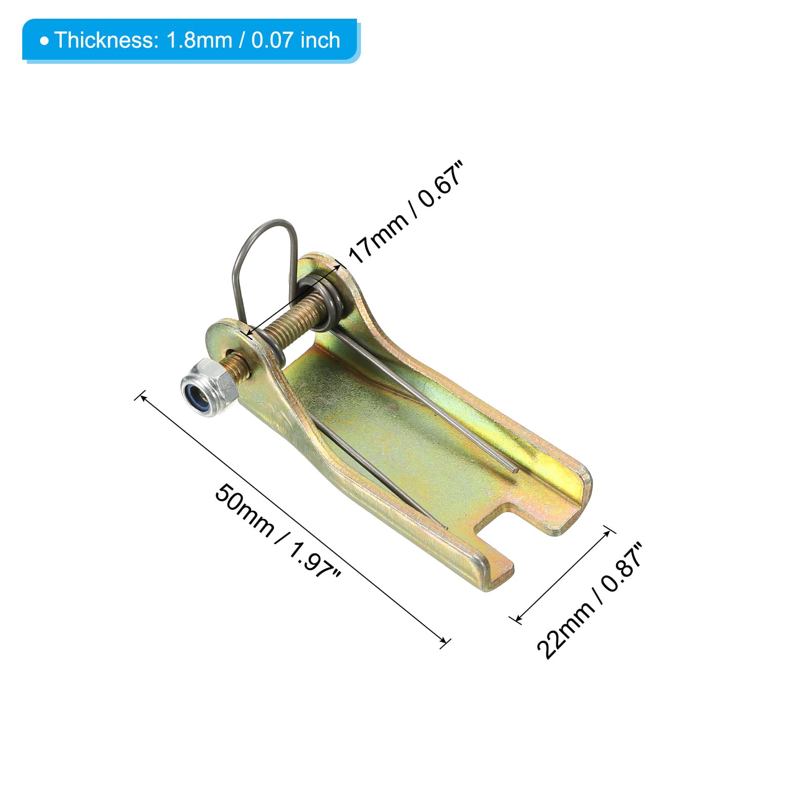 This safety latch is fit for hitches, trailer wiring, cargo management, and more. It is for secure attachment and quick release as needed. Specification Color: Golden Material: Metal Thickness: 1.8mm / 0.07 inch Overall Length: 50mm / 1.97 inch Outer Width: 17 x 22mm / 0.67 x 0.87 inch (Top*Bottom) Package List: 4 x Hook Safety Latch Kit Advantages Sturdy metal material, fine workmanship, rust-resistant, handy and durable. Spring-loaded designed latch for quick release. Instruction Easy to use. Replace the latch on clevis hook in daily applications. Notice Before placing the order, please confirm the size.