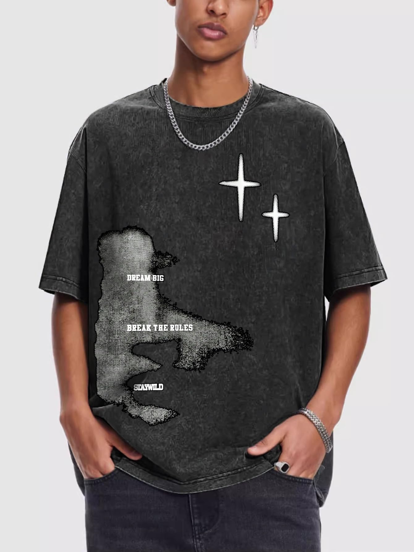 【Y2K STREETWEAR DESIGN】: Features a classic crew neck, drop shoulder, and short sleeves with letter prints for an edgy retro look. Perfect for streetwear, unisex styling.