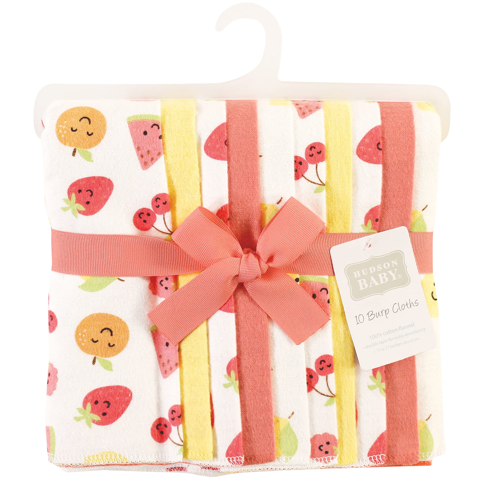 Hudson Baby flannel burp cloths feature multiple layers of fabric to help clean up the messes and spills that you are bound to encounter with your new baby. Our burp cloths are soft and gentle when used on baby's skin and help protect parent's clothes from drool and spills while feeding, burping, and snuggling baby. Our burp cloths will come in handy everyday, whether you are hanging out at home, traveling, or leaving your little one at daycare.