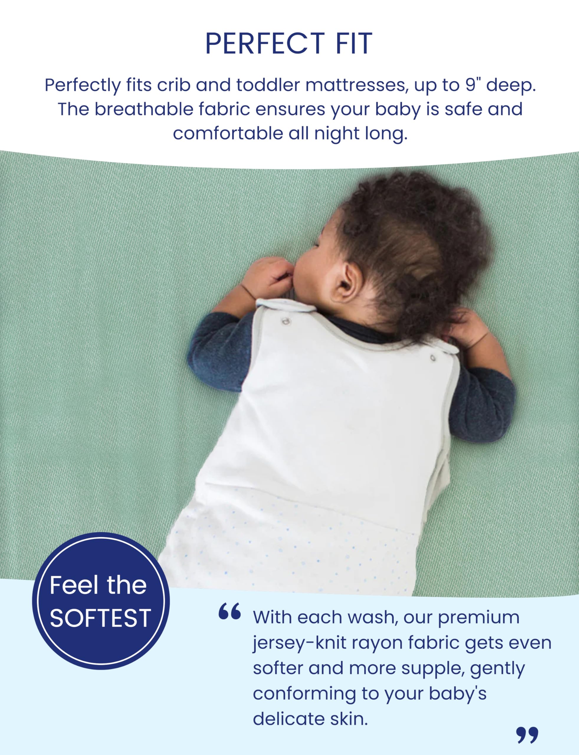 SOFTER FOR LONGER: With every wash, our patent TotCare Fabric becomes softer and more malleable, molding softly to your baby's crib mattress and around your loved little one's skin. No more one-time use. Use it. Wash it. And love it. 100,000+ wash greater; No deformation, no damage, no fading.