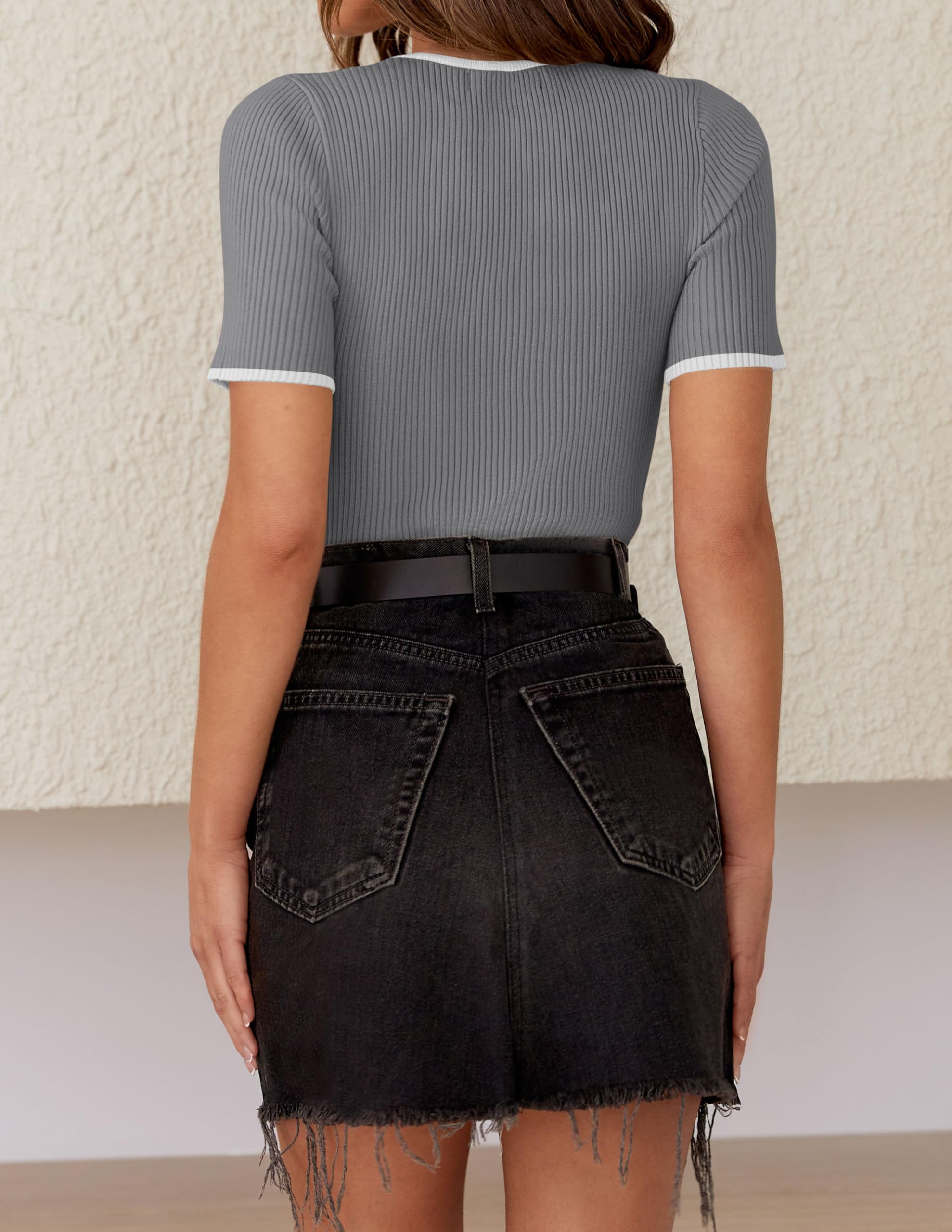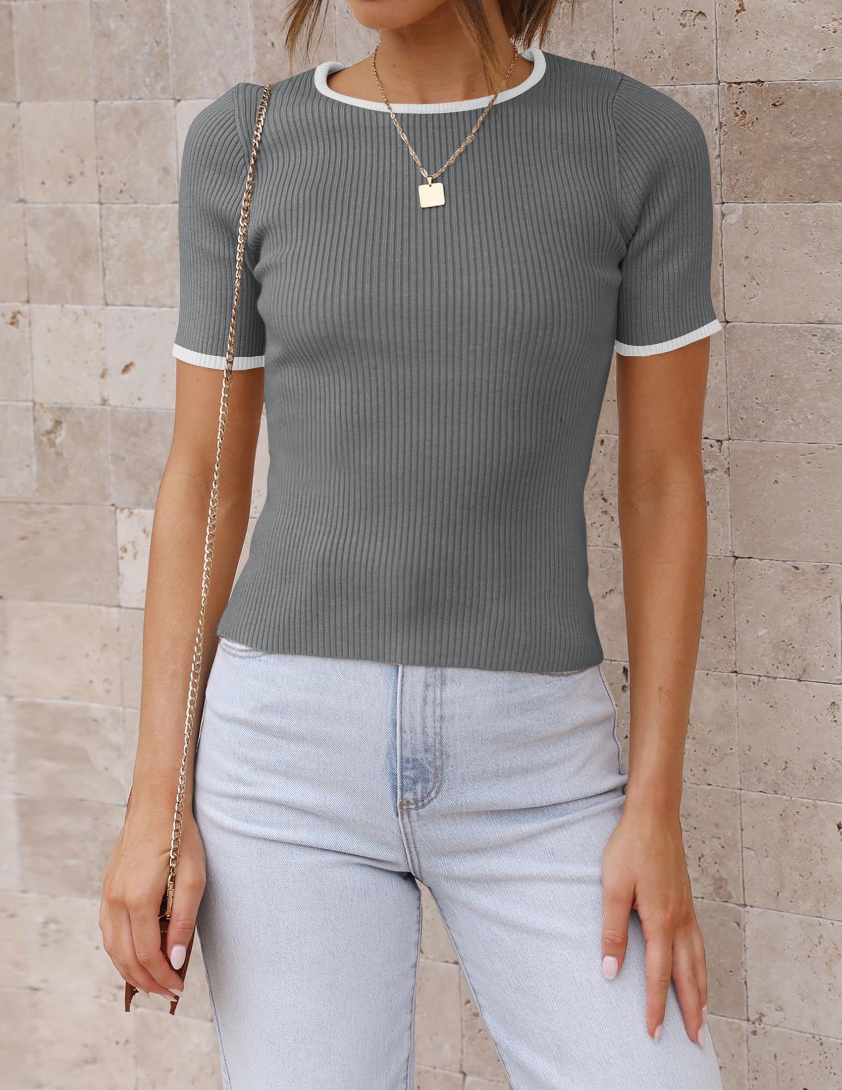 Update your chic edit with our knit tops. This summer tops for women feature a classic round neck, short sleeves, ribbed knit texture, slim fit, solid color, casual and simple style