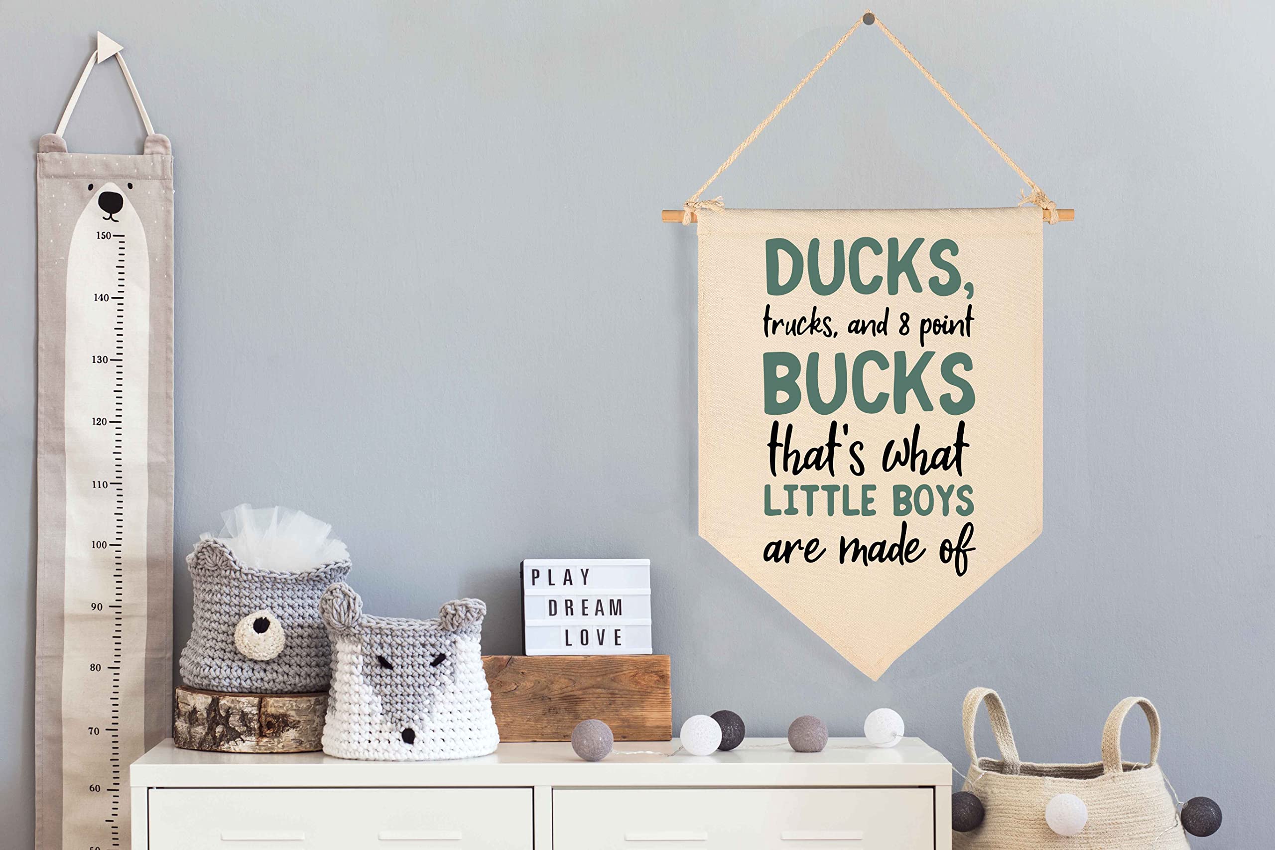 Premium Canvas: Made of cotton canvas in a natural,with 1 tough twine and 1 strong Wooden stick; It's very lightweight so can hang on a thumbtack