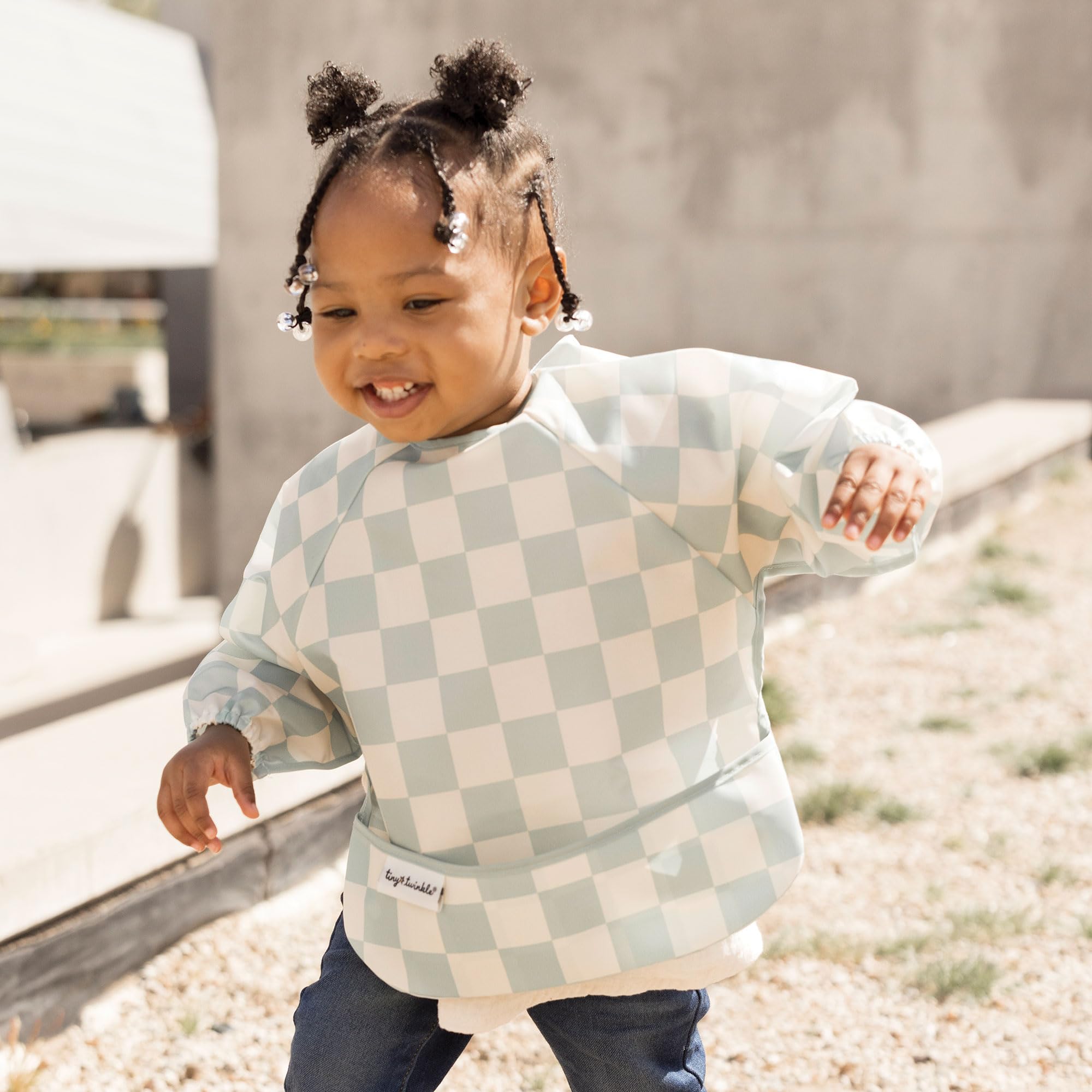 FLEXIBLE COMFORT: Our lightweight bib with sleeves moves with your child, ensuring a soft, non-restrictive fit for every activity. Perfect as a baby food bib for mealtime, playtime, and on-the-go adventures.