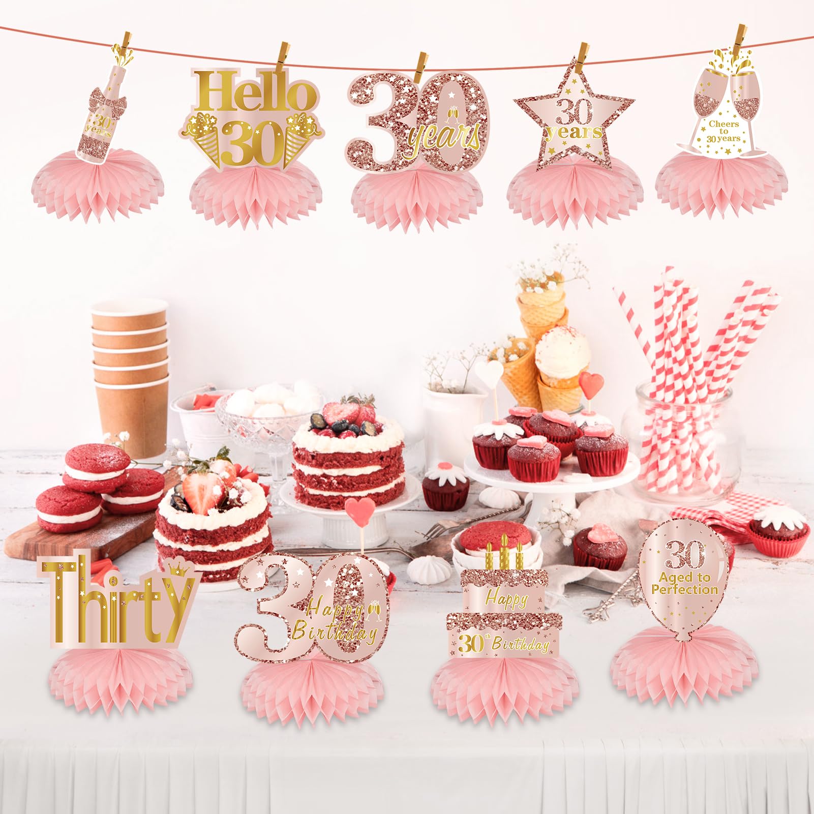 [Applicable to] - It is very suitable for your 30th birthday table decorations. You can place these pink gold decorations in the middle of the table, or you can use a clip to hang them in the desired place to add atmosphere to the birthday party.