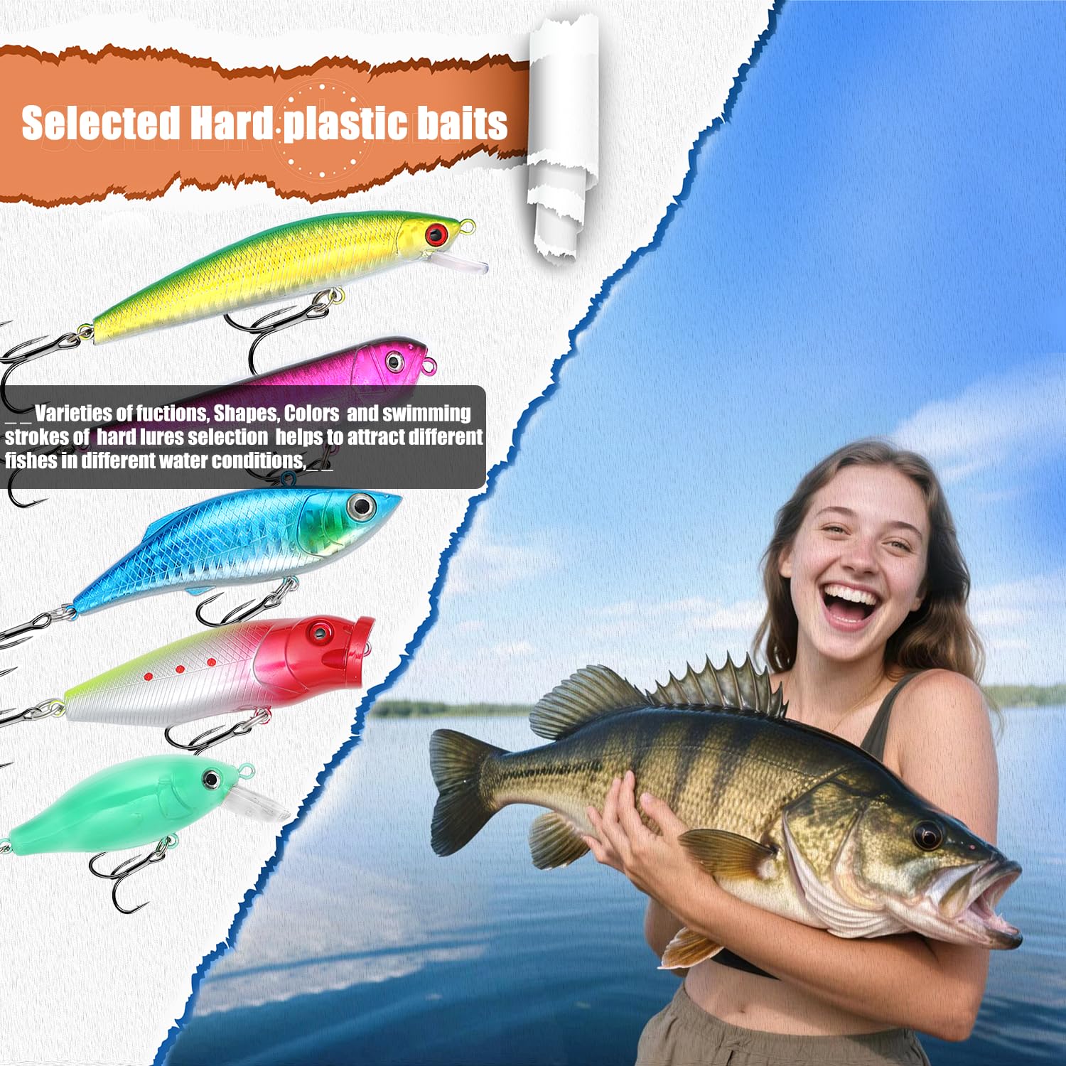 Two layers Portable Tackle Box: The free plastic fishing tackle box measures approximately 21cm X 12cm X6.5 cm. All fishing gear is contained in the box, making it portable and easy to access the precise fishing lures kit you need whenever and wherever.