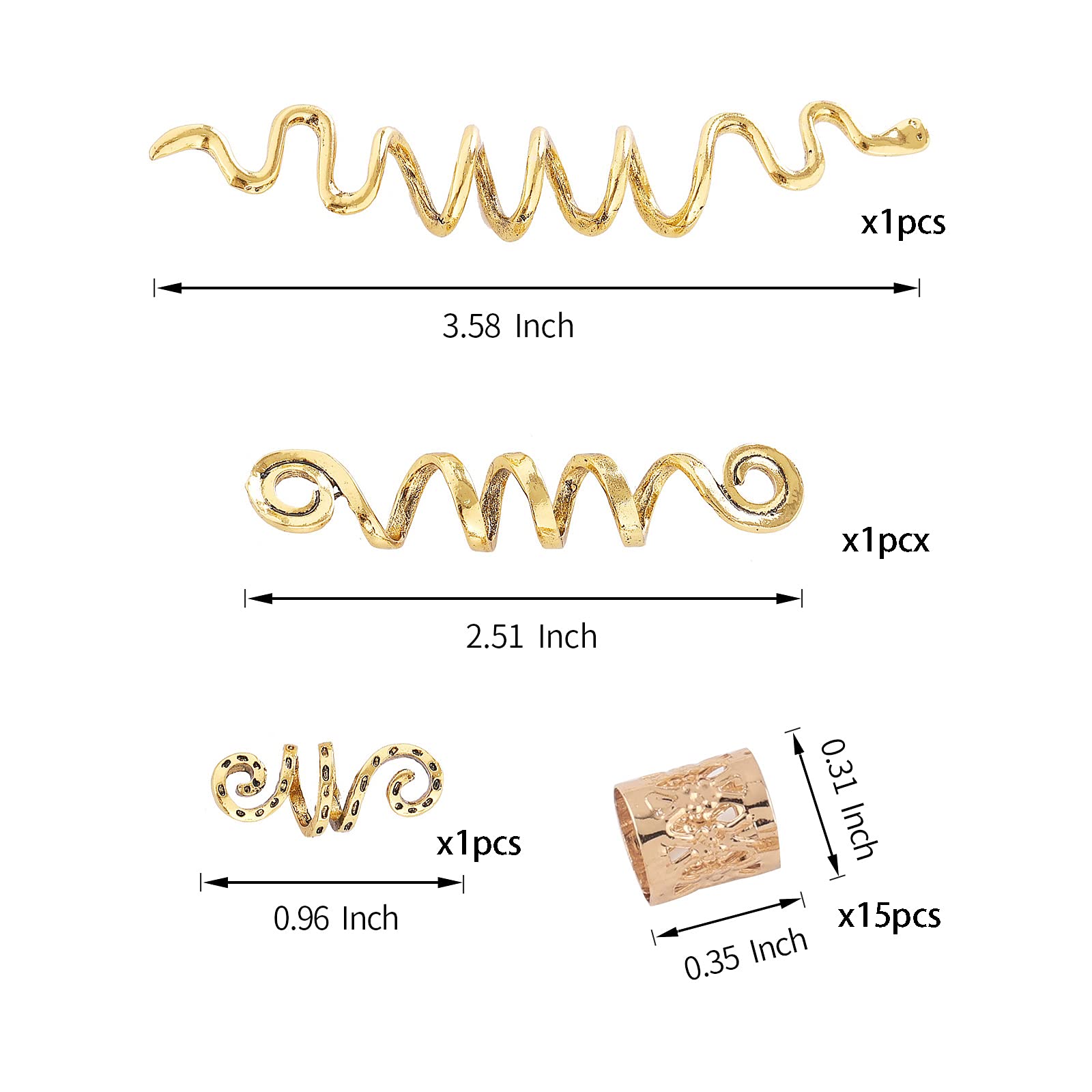 【Braids Jewelry Set】: The package includes 18 pieces of Mix Styles Braid Hair Jewelry.4 different shapes, 18 pcs Gold colors.