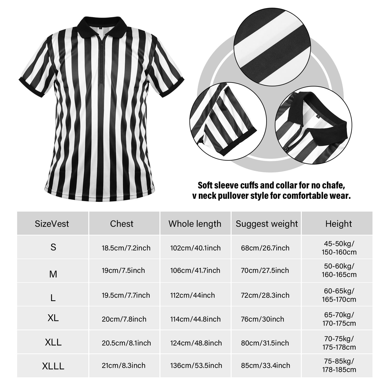 Stylish design: this black and white referee shirt is designed with the delicate stripe and a lapel and zipper pullover style, cozy to wear, and the design of proper size is suitable for people to wear; Whistles are handy for coaches, referees, traffic police officers; The stainless steel whistle has a black lanyard, easy for you to carry