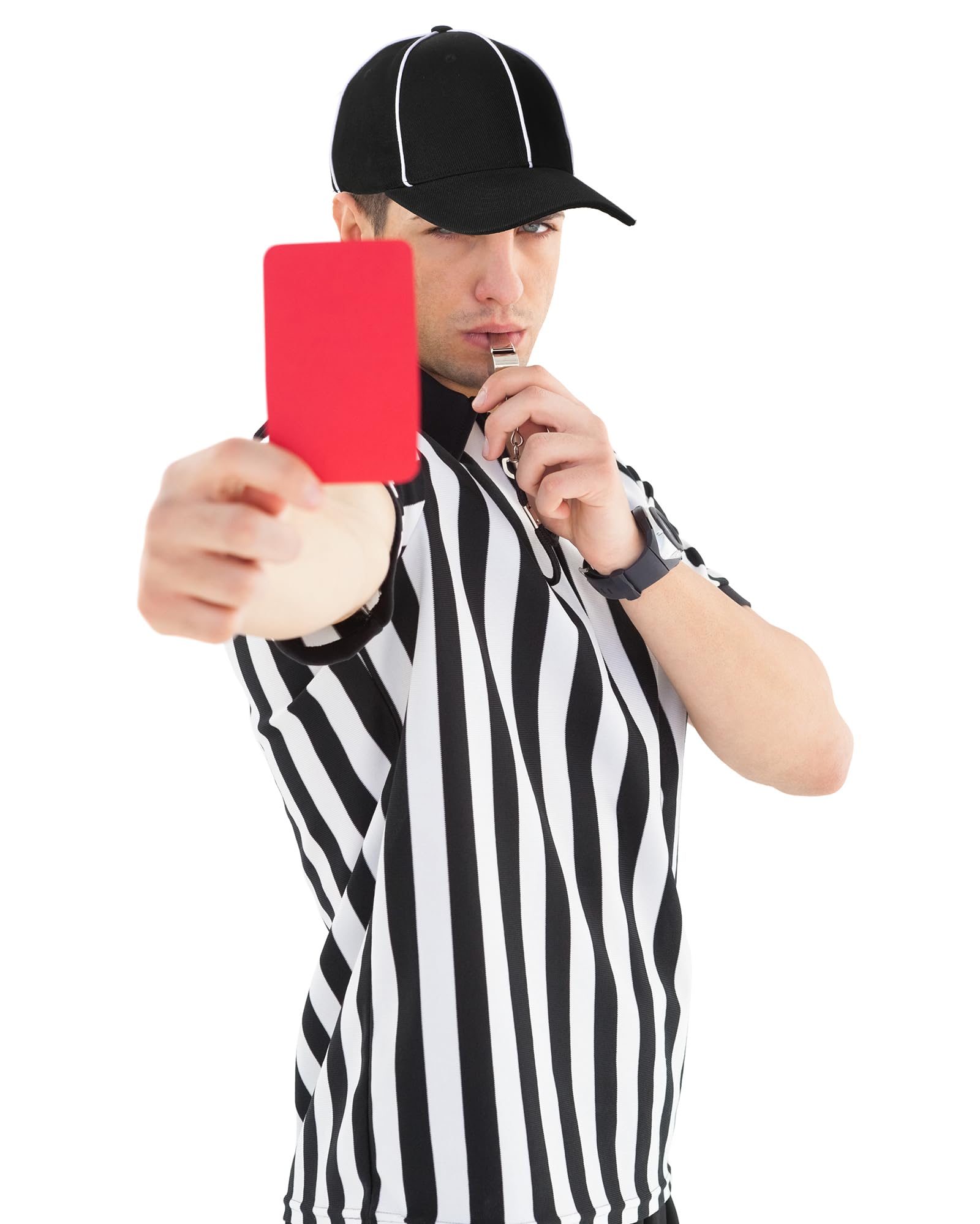 What you get: you will receive 1 piece black and white stripe referee shirt, 1 piece yellow penalty flag, 1 piece hat and 1 piece stainless steel whistle with lanyard, providing a complete outfit for sports referees, which can satisfy your needs