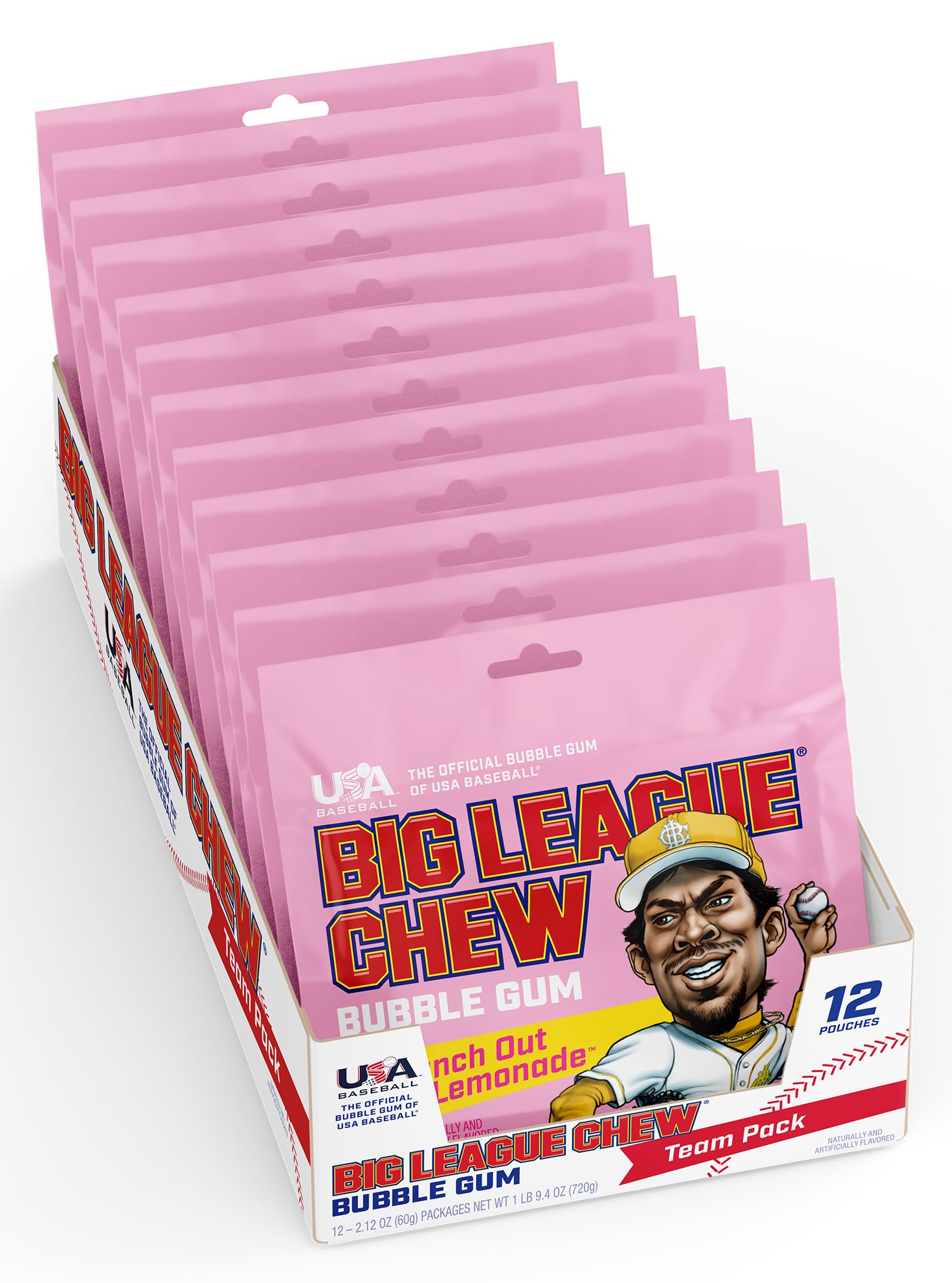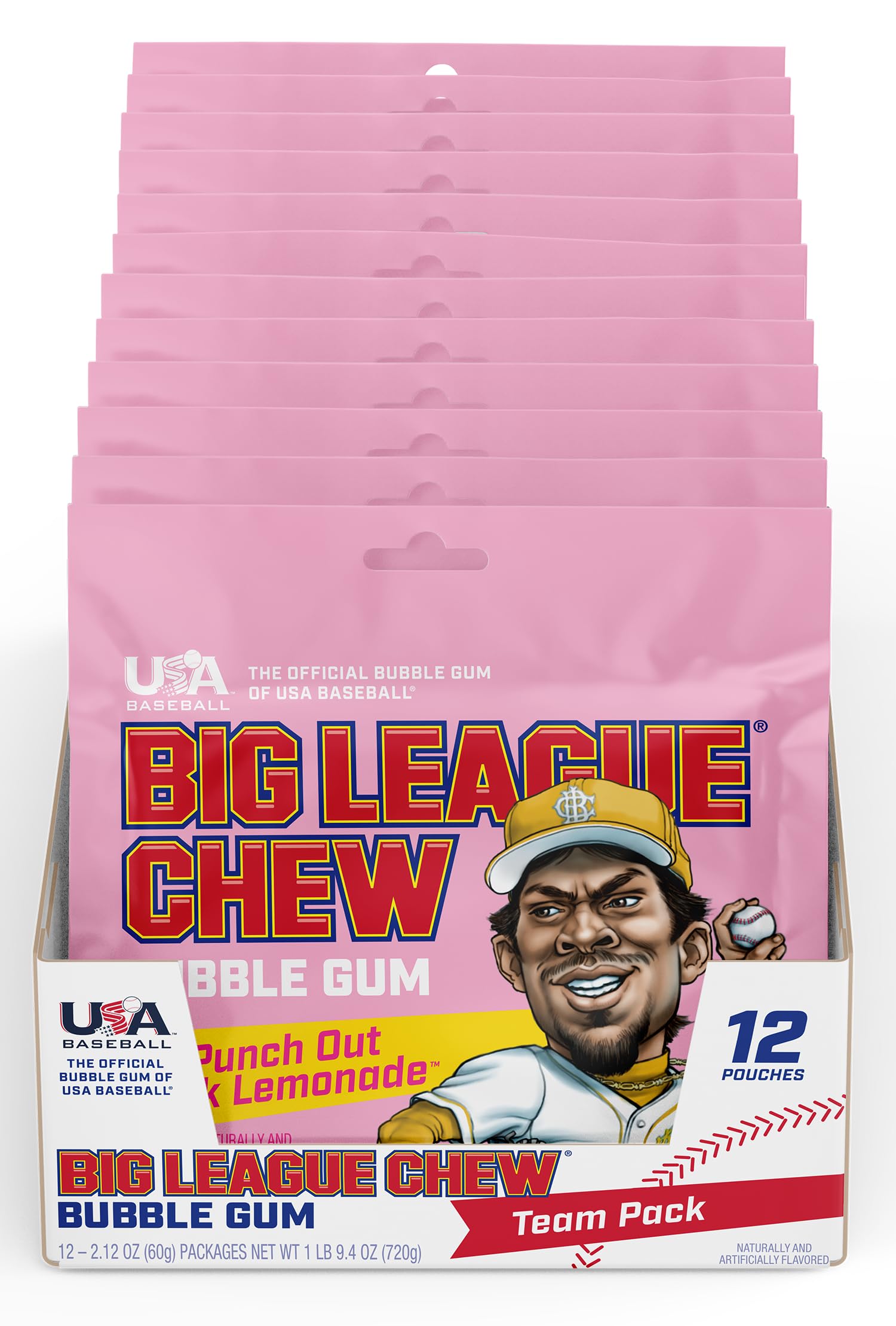 PUNCH OUT PINK LEMONADE – Get ready to step up to the mound and throw some gas with Big League Chew’s new Punch Out Pink Lemonade. This bold bubble gum is bursting with sweet lemonade flavor and a touch of tartness to keep you sharp on the bump!