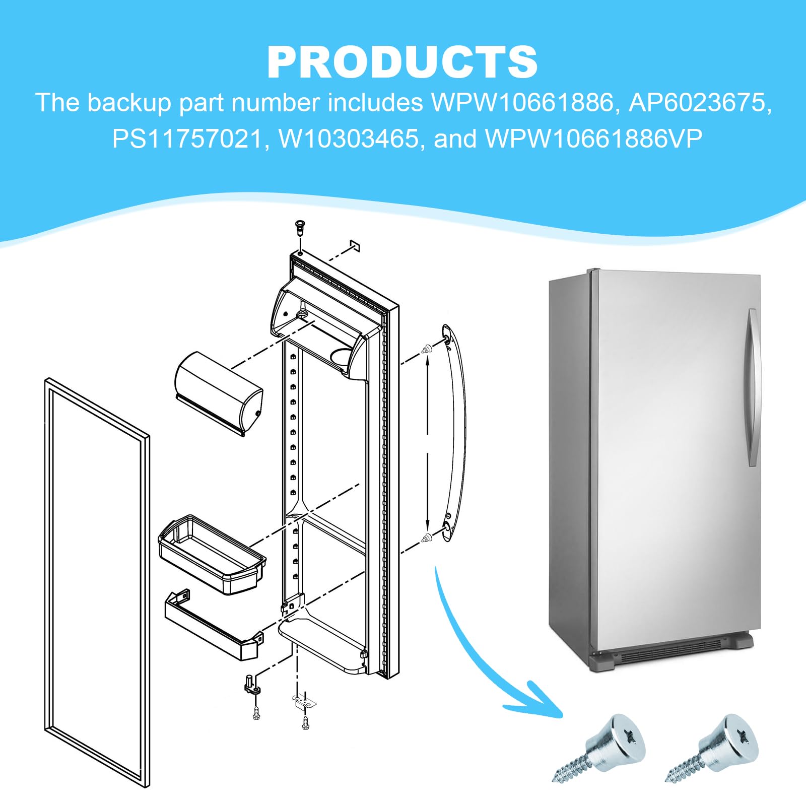 WPW10661886 Refrigerator Door Screw for Whirlpool Refrigerator, Refrigerator Door Handle Screw W10460893 Replaced for Whirlpool Refrigerator Door Handle Mounting - 1 piece