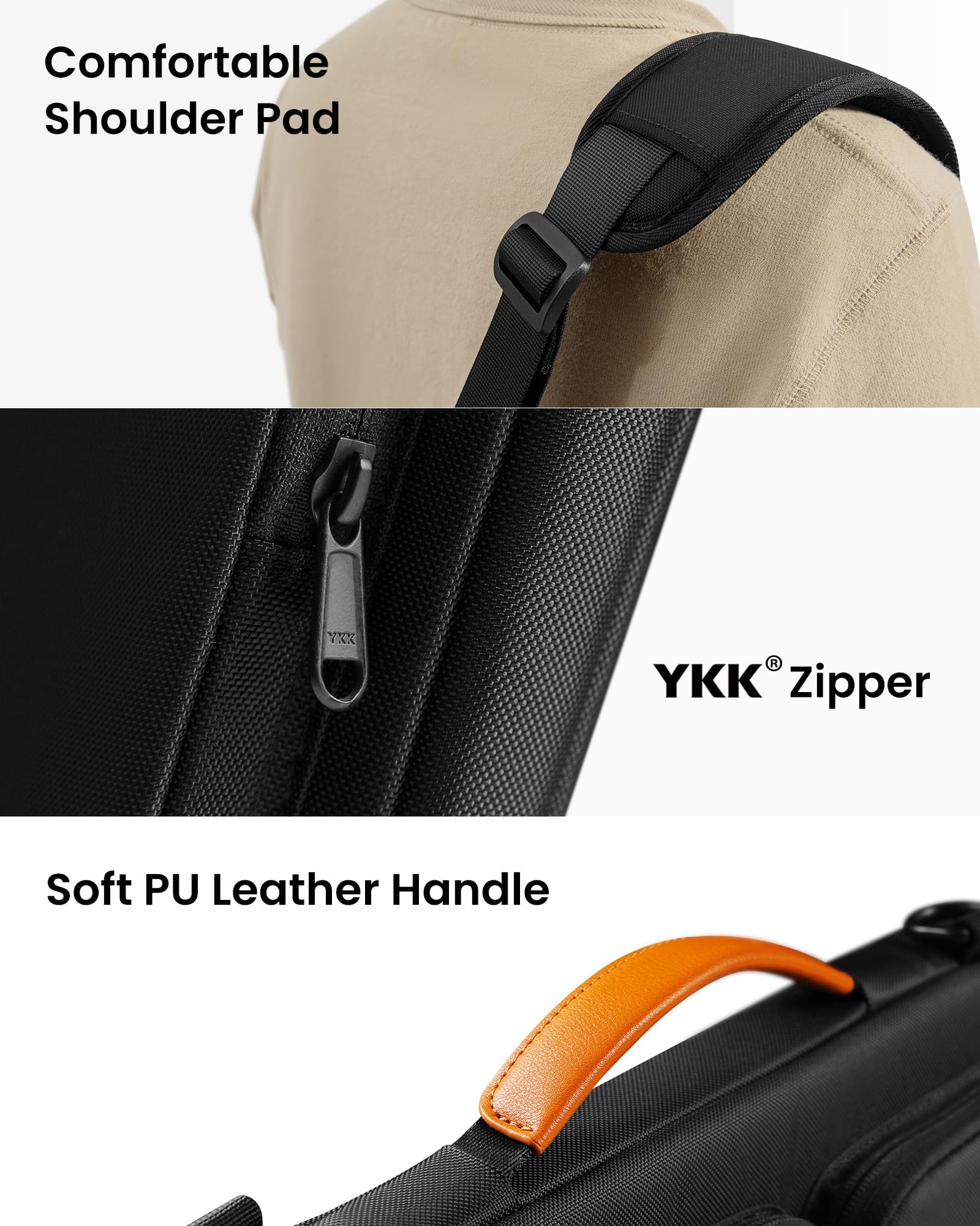 Smart Tri-compartment Storage System: The laptop case has two separate compartments with several small pockets and a strap for Airtag or key. It can keep your electronic accessories, such as charger, cable, USB hub, Kindle, etc., stay organized. In addition, a hidden pocket on the back allows you to store your personal belongings for easy access while remaining secure