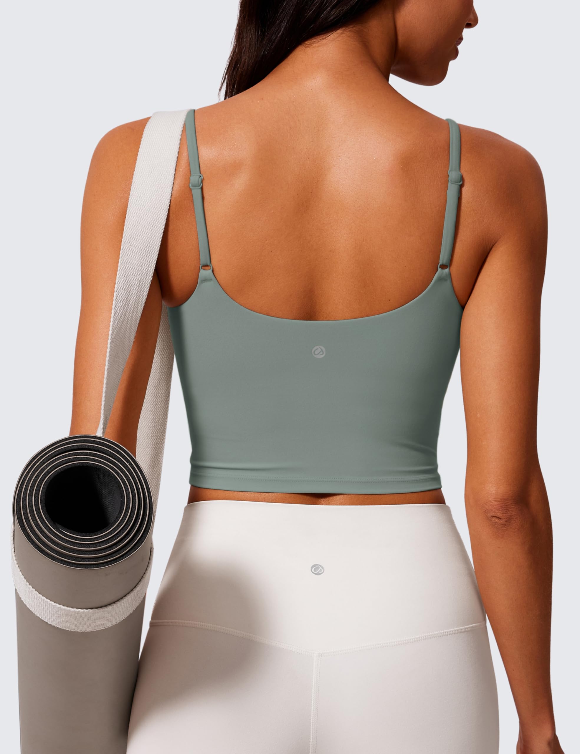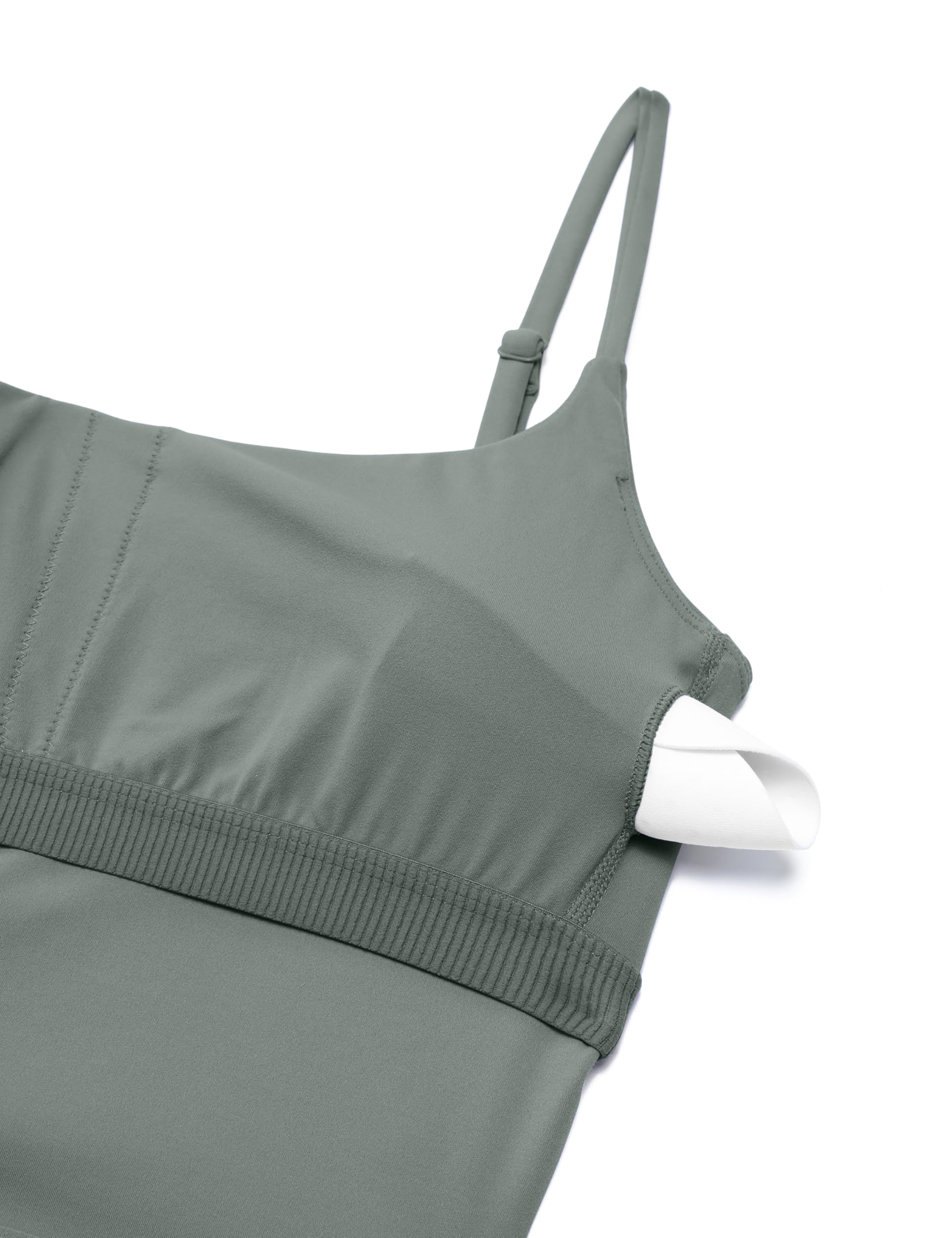 U neck & back. Adjustable thin straps for easy adjustment to suit workout