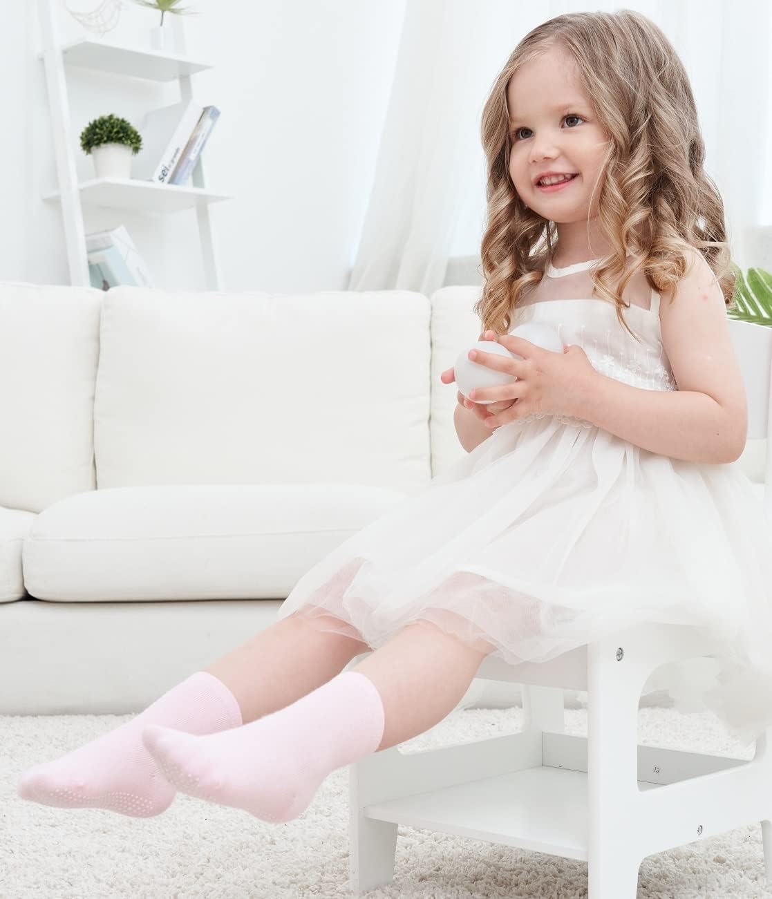Package includes 12 pairs of non slip crew socks to easily match with multiple outfits. They are available in various sizes including 0-6 months & 6-12 months infants, 12-36 months toddlers, 4-7 years little kids and 8-10 years big kid to suit your child`s growing needs
