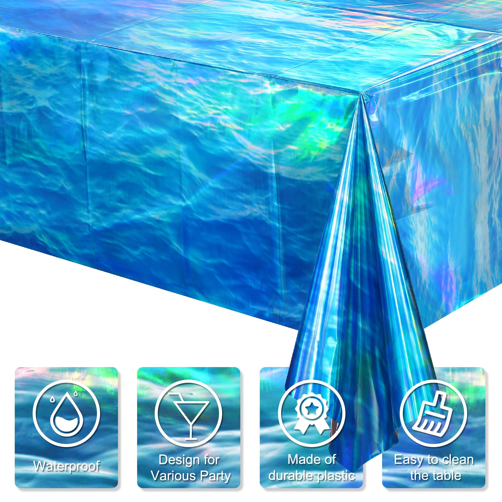Application Occasion: this ocean plastic table covers features with iridescent blue, which will create a bright feel to your table decor, great for under the sea party,mermaid party, sea party,beach and surf party, baby shower,pool birthday party ,ocean party decorations and supplies,and also perfect for daily use.