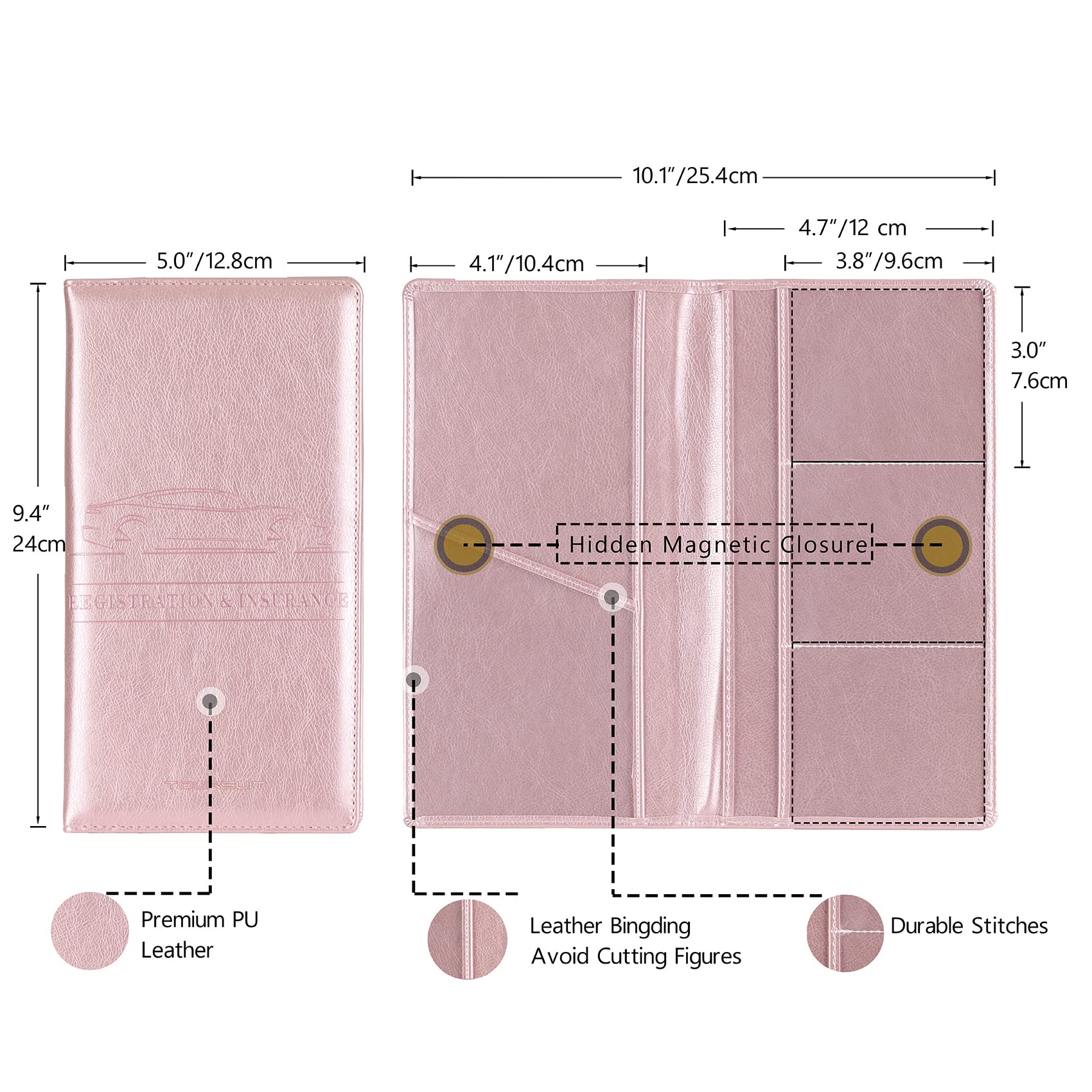 🧲Hidden Magnetic Closure: The glove box document holder are built with hidden magnetic closure, which will keep your car paperwork organizer neat and tidy and ensure the certifications stay closely and and completely protective within the registration pouch.