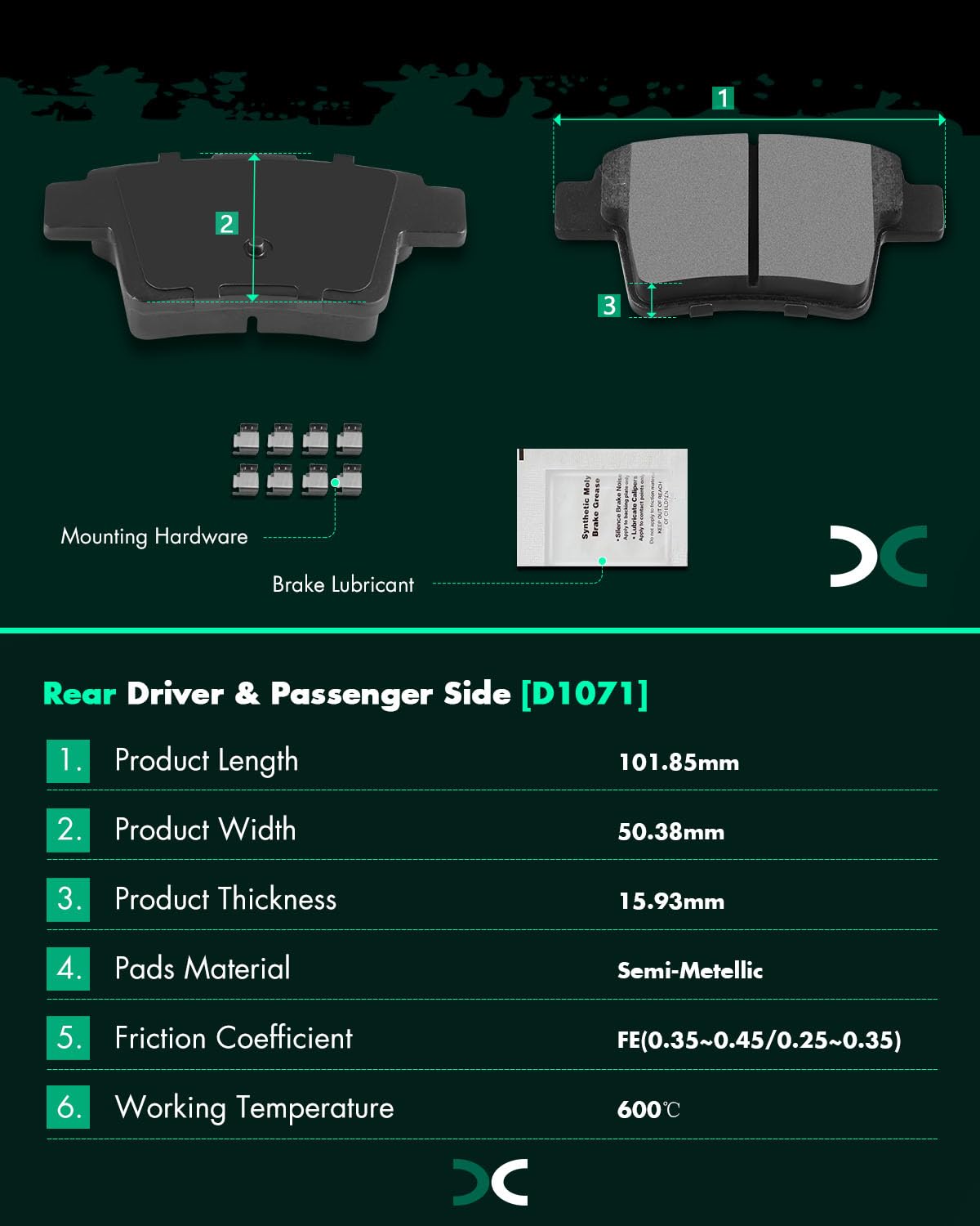 COMPATIBLE VEHICLES : 4PCS Brake Pads For Ford For Five Hundred 4-Door 2005 2006 2007,For Ford For Freestyle 4-Door 2005 2006 2007,For Ford For Taurus 4-Door 2008 2009,For Ford For Taurus X 4-Door 2008 2009,For Jaguar X-Type 4-Door 2005 2006 2007 2008,For Mercury For Sable 4-Door 2008 2009,For Mercury Montego 4-Door 2005 2006 2007