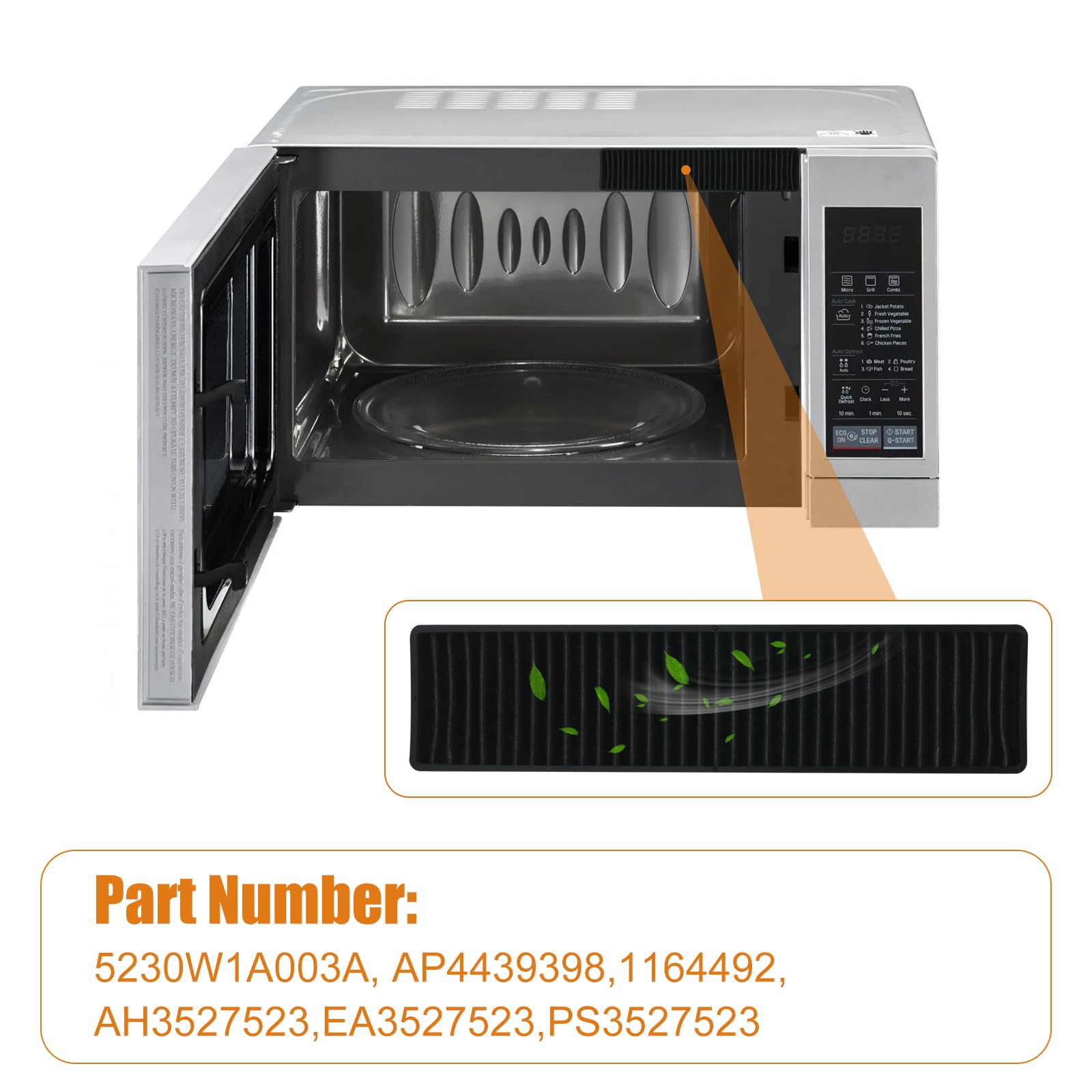 【Part Number】This charcoal filter - part number 5230W1A003A replacement for LG microwaves Charcoal filter 5230W1A003A removes cooking odors from air that circulates through the microwave vent.