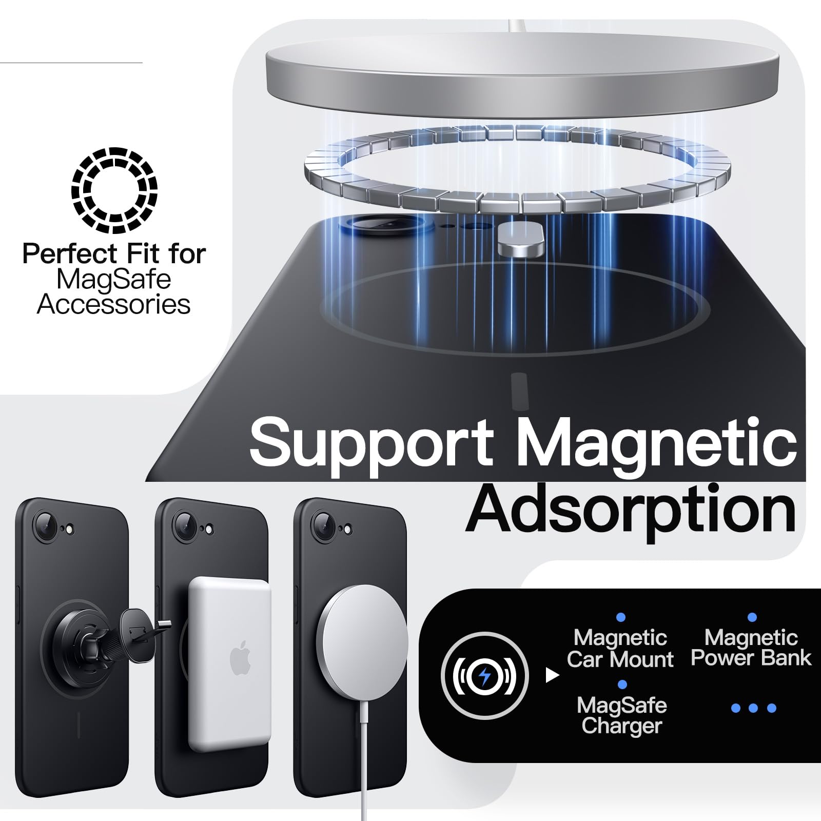 [Strong Magnetic Adsorption] The perfectly aligned magnets make wireless charging faster and easier than ever before. Compatible with MagSafe accessories. When it's time to charge, just keep the case on your phone and snap on your charger