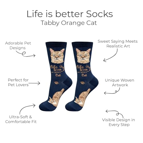 Description Introducing our collection of adorable and vibrant pet lover socks designed exclusively for pet lovers! These funny socks are the epitome of cuteness and novelty, guaranteed to bring a smile to your face. Big image of dog head woven on both sides on the socks and full body image woven on the bottom of the socks with a cute saying that says life is better with Dog. These socks are made in South Korea, These funny socks are made from 200 needle count machines which give life-like detail of your favorite pet. Step up your sock game with our adorable and hilarious Dog Socks, designed especially for pet lovers! These novelty socks are the perfect addition to your collection, featuring cute and silly designs that are bound to make you smile. Made with high-quality materials, these fun socks offer both comfort and style. They add a playful and fashionable touch to your everyday outfits, whether you're dressing up or keeping it casual. Whether you're a dog mom, a dog dad, or simply a dog lover, these socks are a must-have. With their delightful designs and comfortable fit, these socks are a fashionable treat for pet lovers and make great novelty gifts and dog mom gifts.