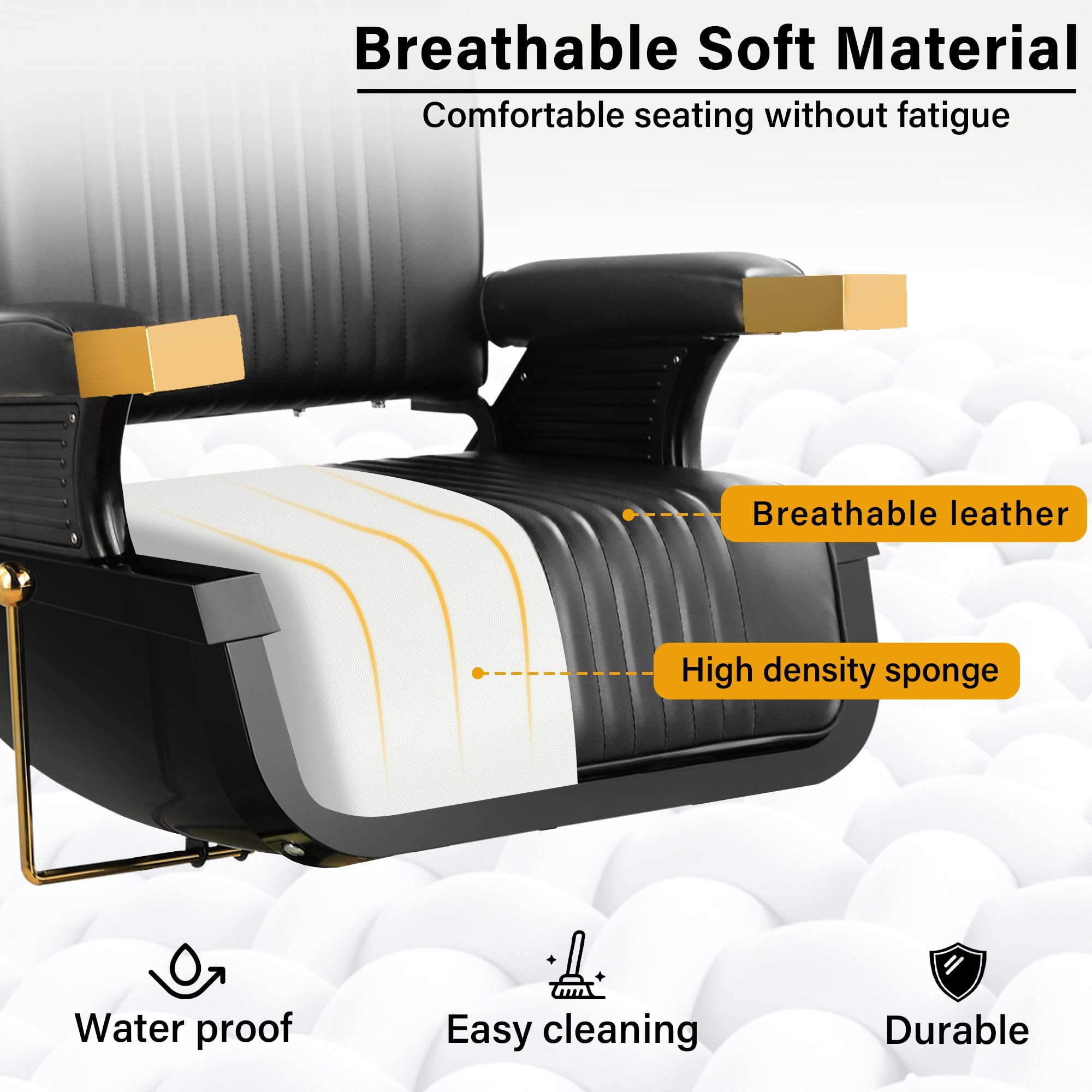 Retro Style- KIIUMI black gold barber chair adds a touch of classic charm to any hair salon or spa with its unique retro style design. Barber chairs for barber shop combines functionality with aesthetics to create a warm and fashionable atmosphere. The retro appearance enhances the overall decoration of the beauty salon.