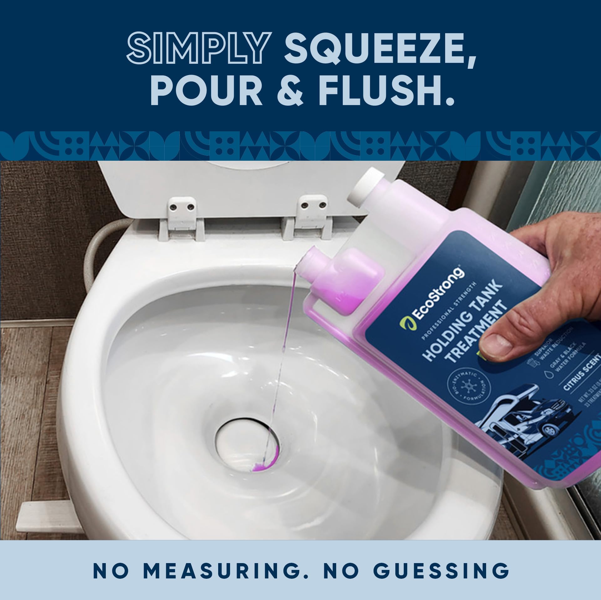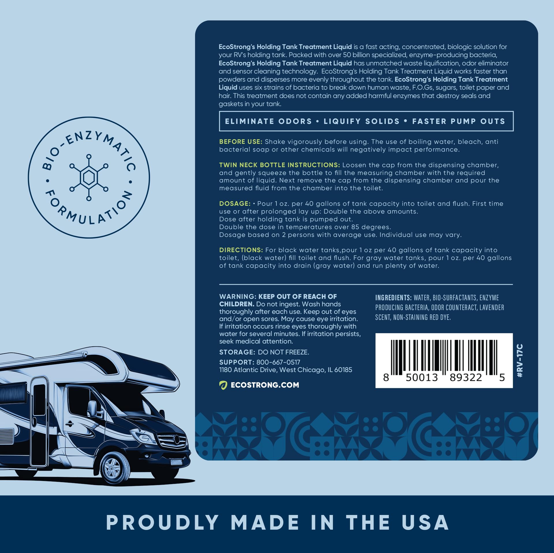 Waste Digester: This enzyme-based black tank cleaner liquifies RV toilet paper and organic build-up. EcoStrong’s RV Toilet Treatment breaks down waste in black tanks making dumping easier.