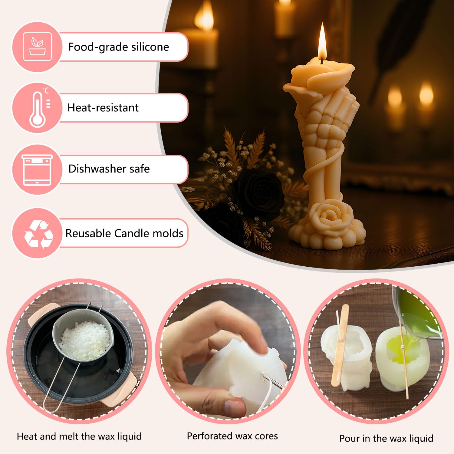 【【Hand Holding Rose Candle Mold】:You will receive 1Pc Hand Holding Rose Candle Silicone Mold. Hand Holding Rose Silicone Candle Mold can meet your DIY crafting needs.The size of each mold is different,please refer to the picture for the specific size. These Hand Holding Rose Candle Molds are compatible with a wide range of hard candle waxes, such as paraffin wax, hard gel wax, beeswax, or soy wax/beeswax blends.Our product is not suitable under 12 years old