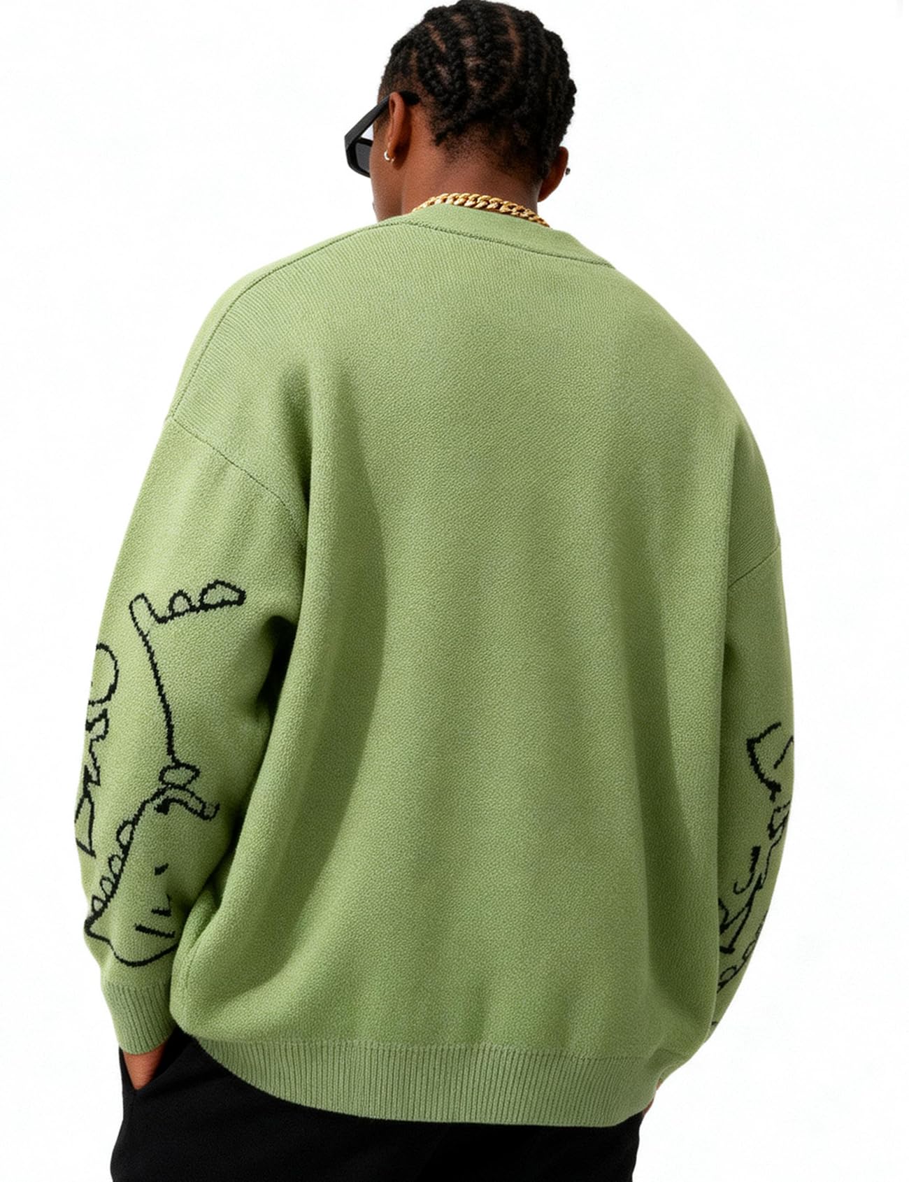 Material: Oversized dinosaur sweater made of high-quality soft stretchy knitted material, comfortable and cozy to wear, fall winter warm graphic sweater for women and men