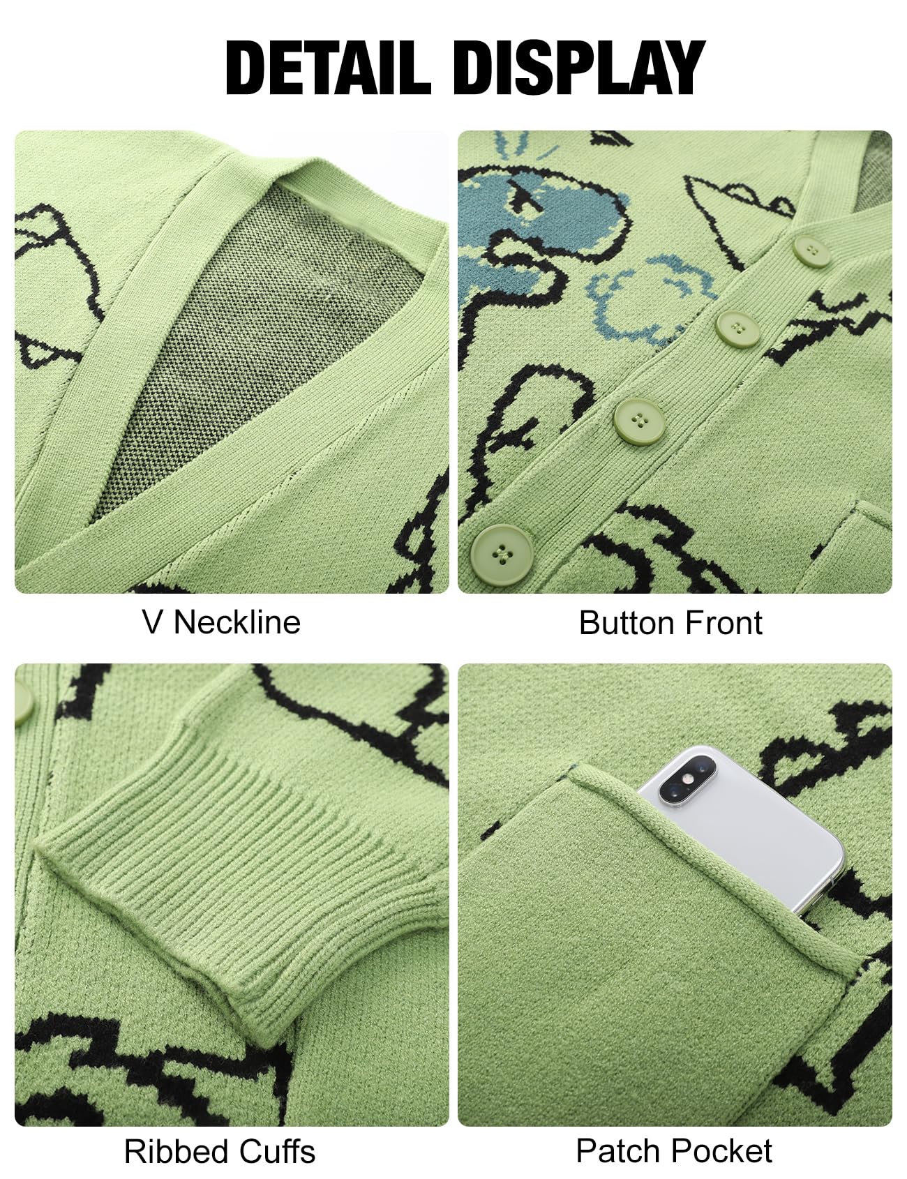 Oversized Style: Oversized button down cartoon knit cardigan coat, fits most body figures, on trend and so retro, streetwear modern aesthetic sweater for teens, will never out of date