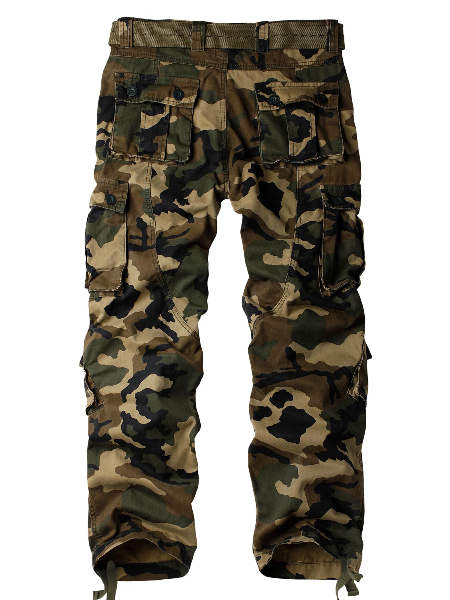 Product Features:Men's casual wild pants features straight leg openings with drawstring tie to fit with boots, can adjust the opening of hem prevent wind, prevent trees from being scratched and make outdoor activeities more convenience.Also,this versatile, relaxed fit,camo cargo pants for men sits at waist ,straight leg openings with drawstring tie to fit with boots are great for hunting pants, working pants, military style BDUs, costume pants.
