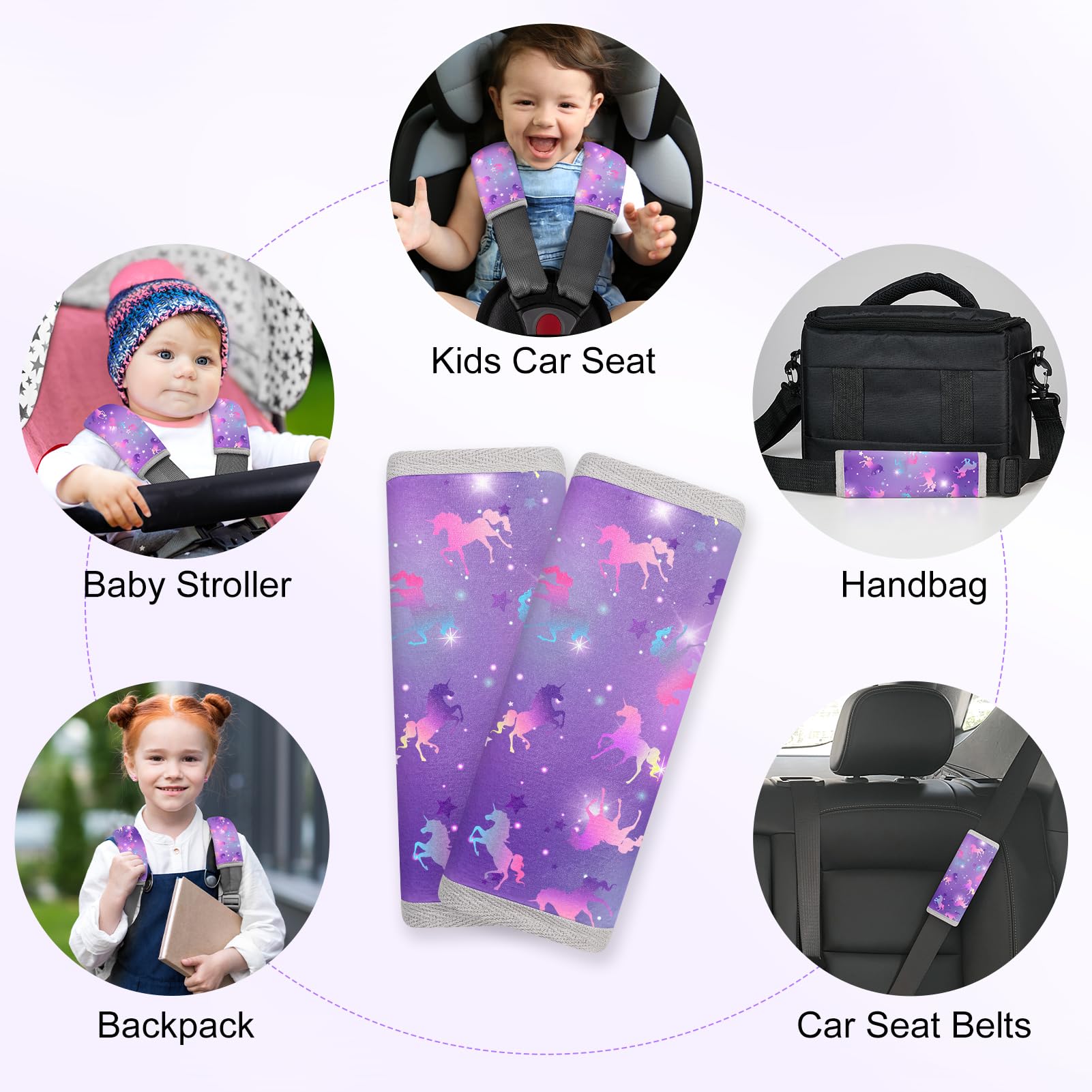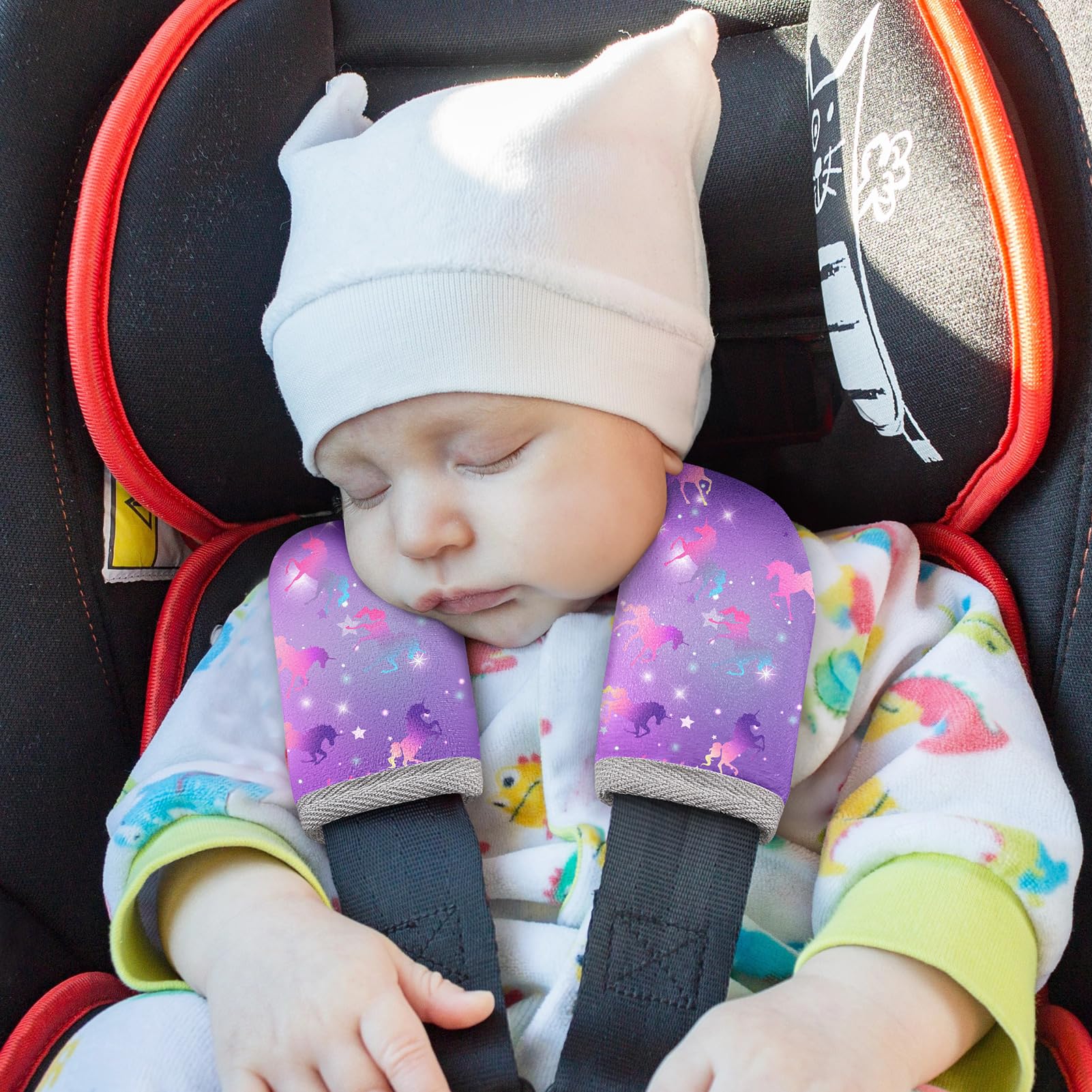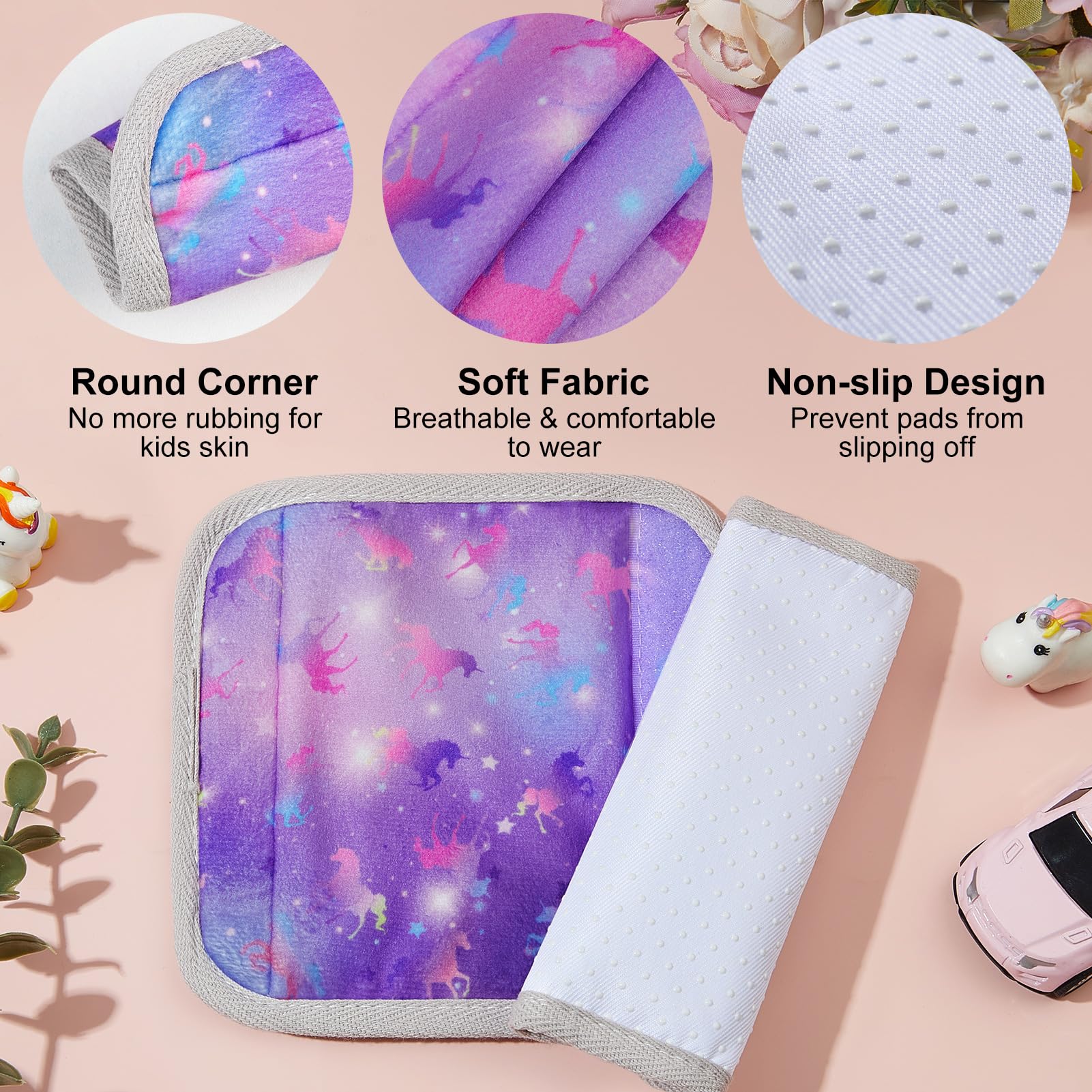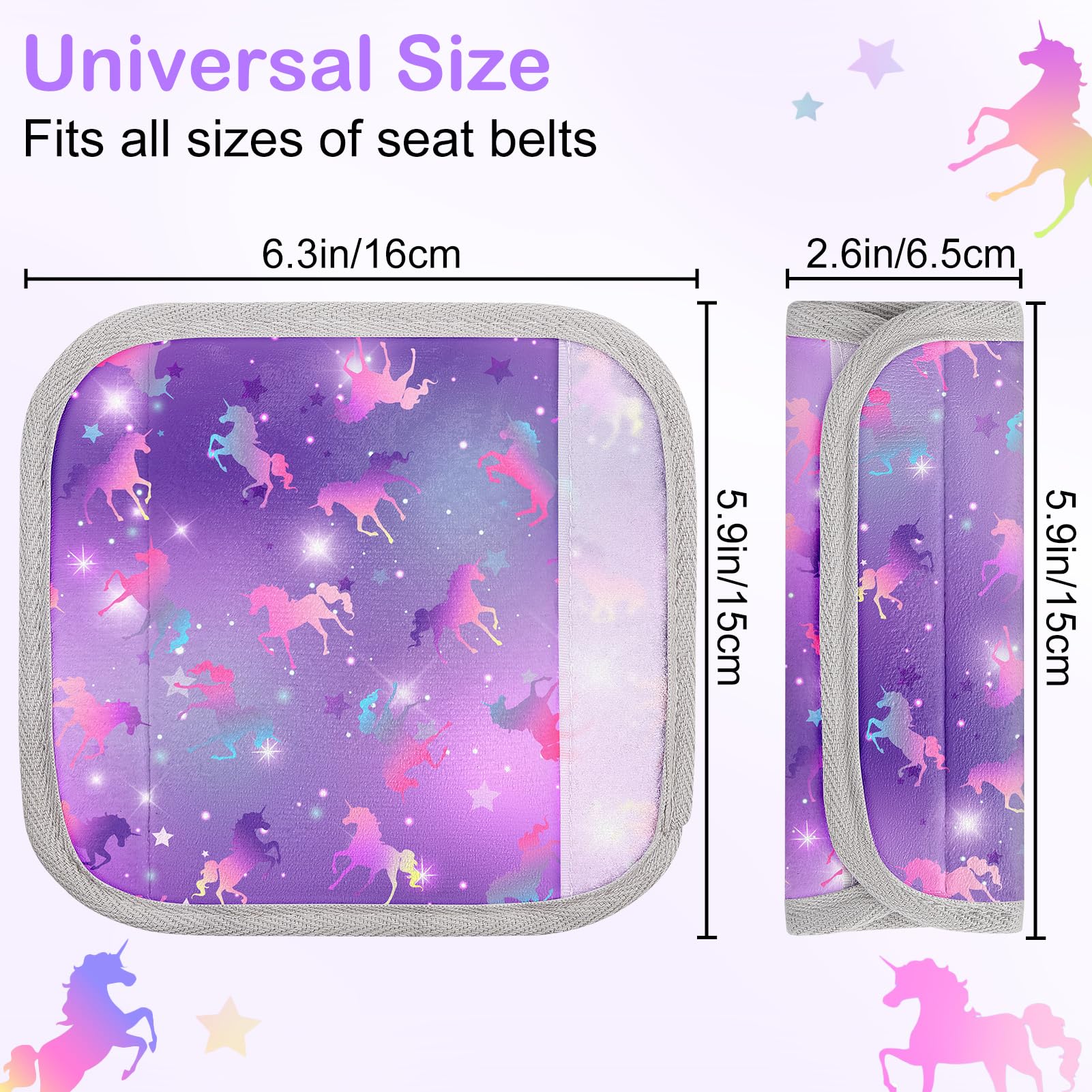 Universal Size & Anti-Slip: Our seatbelt covers for kids come in two sizes—small (5.9 × 2.6 inches) and large (9.4 × 6.3 inches)—specially designed for babies and kids, fit most car seats, strollers and pushchairs; The inside of the seat belt covers is an anti-slip design, keeping it in place with no sliding