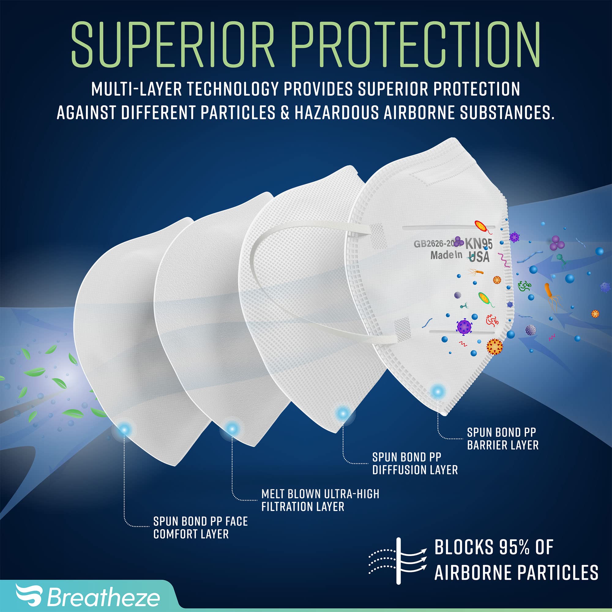 ✅ BREATHE IN THE CLEAN - This USA made nonwoven cloth face mask filters dust, pollen, smoke, or smog. This KN95 mask is NOT an N95 mask. For more information about KN95 masks please see the following before you purchase: amazon.com/AboutKN95s