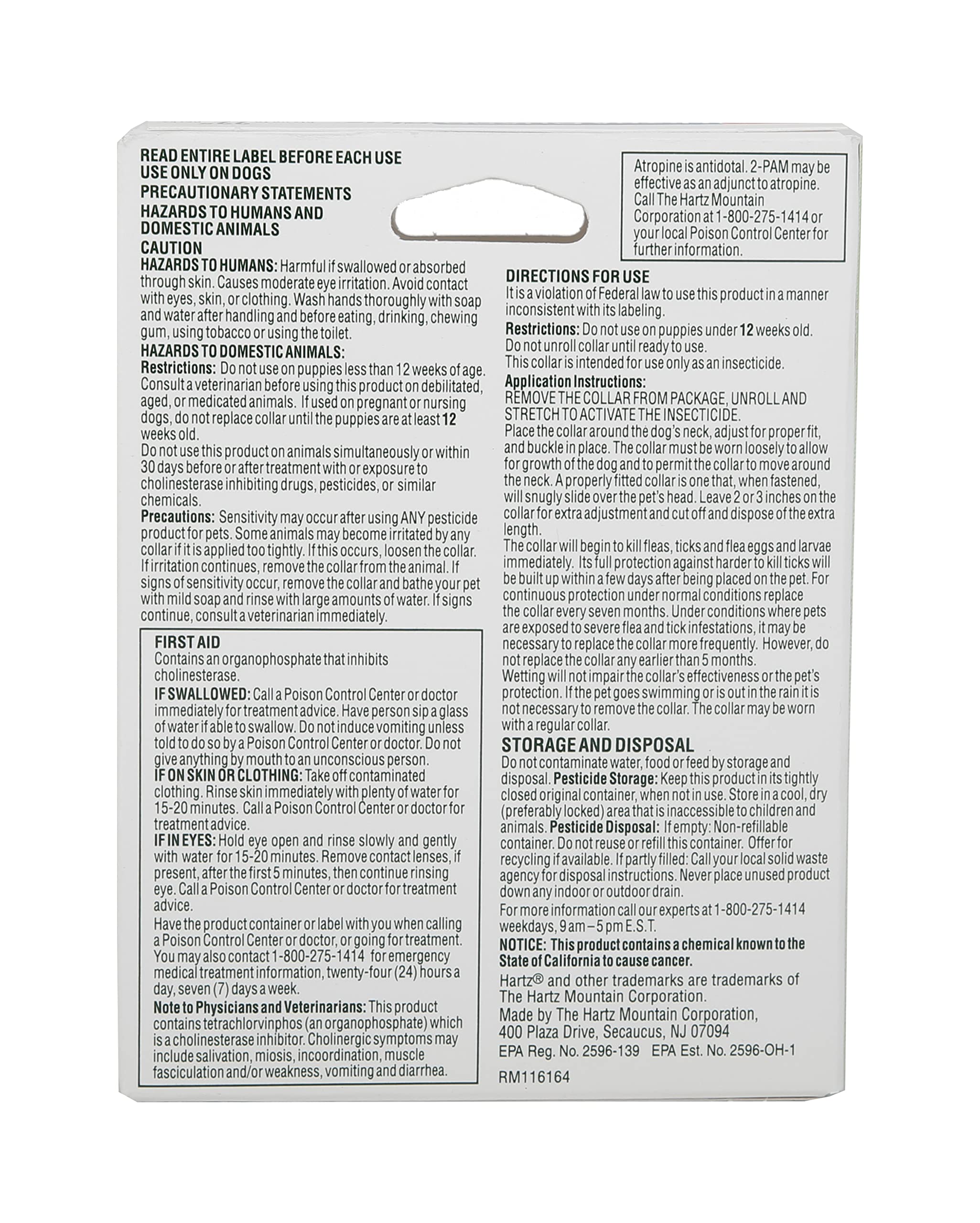 Tell pesky parasites to ‘bug off’ with the Hartz UltraGuard Plus Orange Reflective Flea & Tick Collar for Dogs & Puppies. This bright orange collar kills and repels both fleas and ticks on pups with necks up to 22 inches for 7 months, and also prevents flea eggs from hatching for over half the year - stopping the flea life cycle and inhibiting reinfestation. The water resistant design remains effective even after getting caught in the rain. Additionally, the Reflect-X Shield reflects direct light for up to 300 feet for an added dimension of nighttime safety. For continuous flea and tick protection from head to tail, replace the collar every 7 months. For use on puppies 12 weeks of age and older. Directions: Remove collar from package, unroll and stretch to activate insecticide generator. Do not use on puppies under 12 weeks of age. Do not unroll collar until ready to use. Place the collar around the dog’s neck, adjust for proper fit and buckle in place. The collar must be worn loosely to allow for growth of the dog and to permit the collar to move about the neck. Generally, a properly fitted collar is one that, when fastened, will snugly slide over the dog’s head. Leave 2 or 3 inches on the collar for extra adjustment and cut off and dispose of the extra length. Consult a veterinarian before using this product on debilitated, aged or medicated pets. Sensitivity may occur after using any pesticide product for pets. Some animals may become irritated by the collar if it is applied too tightly. If this occurs, loosen the collar. If irritation continues, remove the collar and bathe your dog with mild soap and rinse with large amount of water. If signs continue, consult a veterinarian immediately. Do not use this product on dogs simultaneously or within 30 days before or after treatment of other flea and tick products. However, flea and tick collars may be replaced immediately.