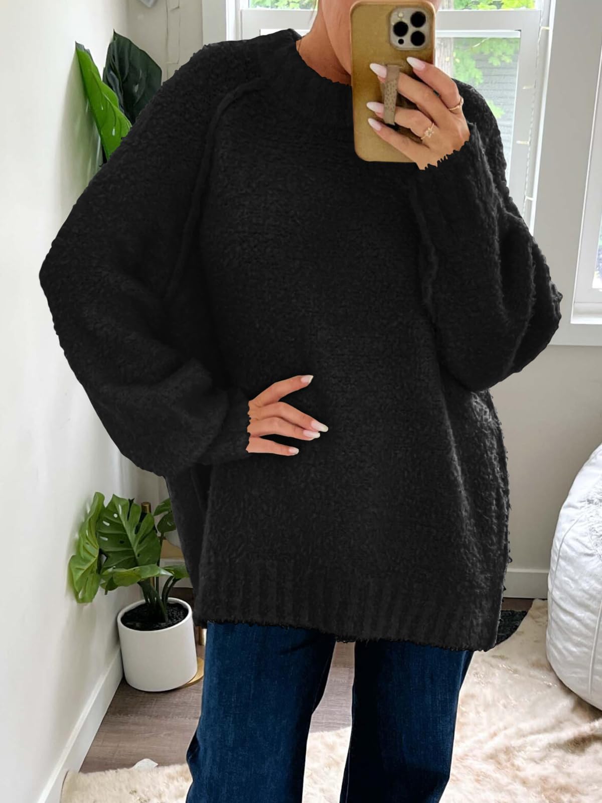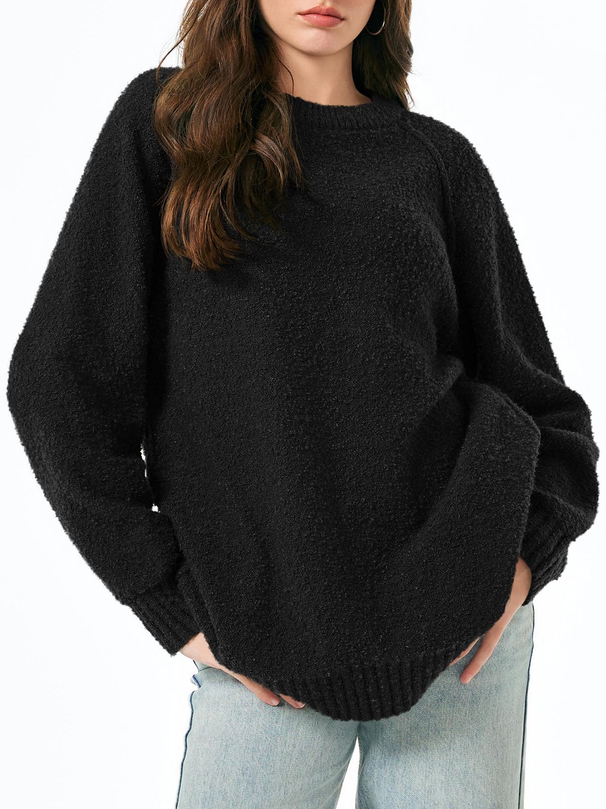 Features: Fuzzy fabric, oversized, long sleeve, ribbed knit hem, crew neck, drop shoulder, casual slouchy style, loose fit, solid color. The fuzzy sweater for women is good for early spring, fall and winter days.