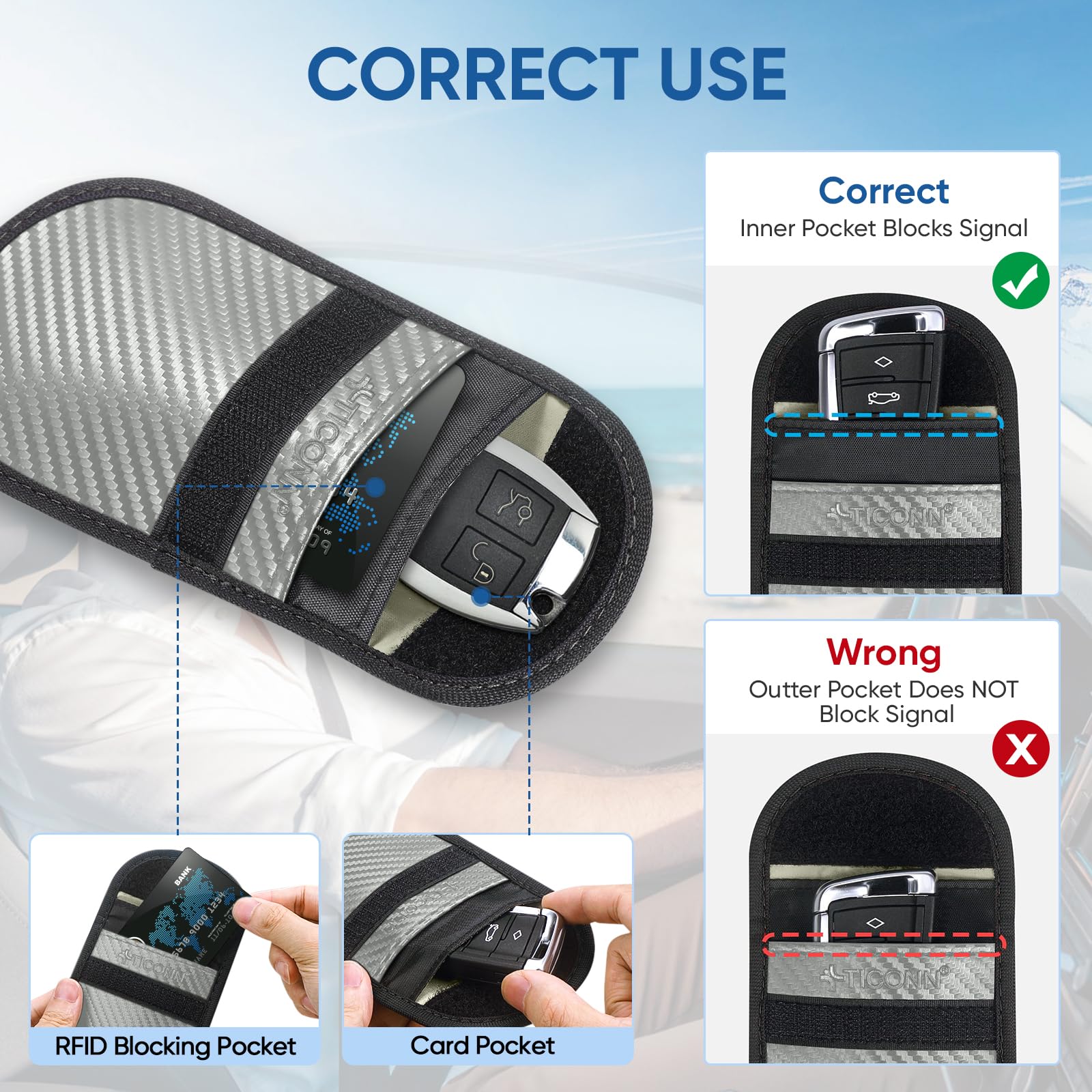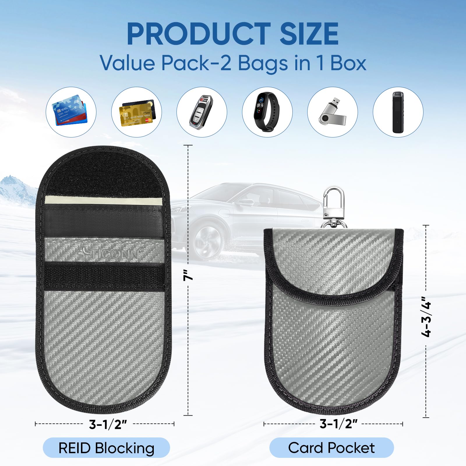 Why You May Need One: Get your car protected; TICONN faraday bag provides a complete signal blocker for your vehicle key fob; This prevents thieves from picking up and relaying signals from your key, to shield against break-ins and keyless ignition theft