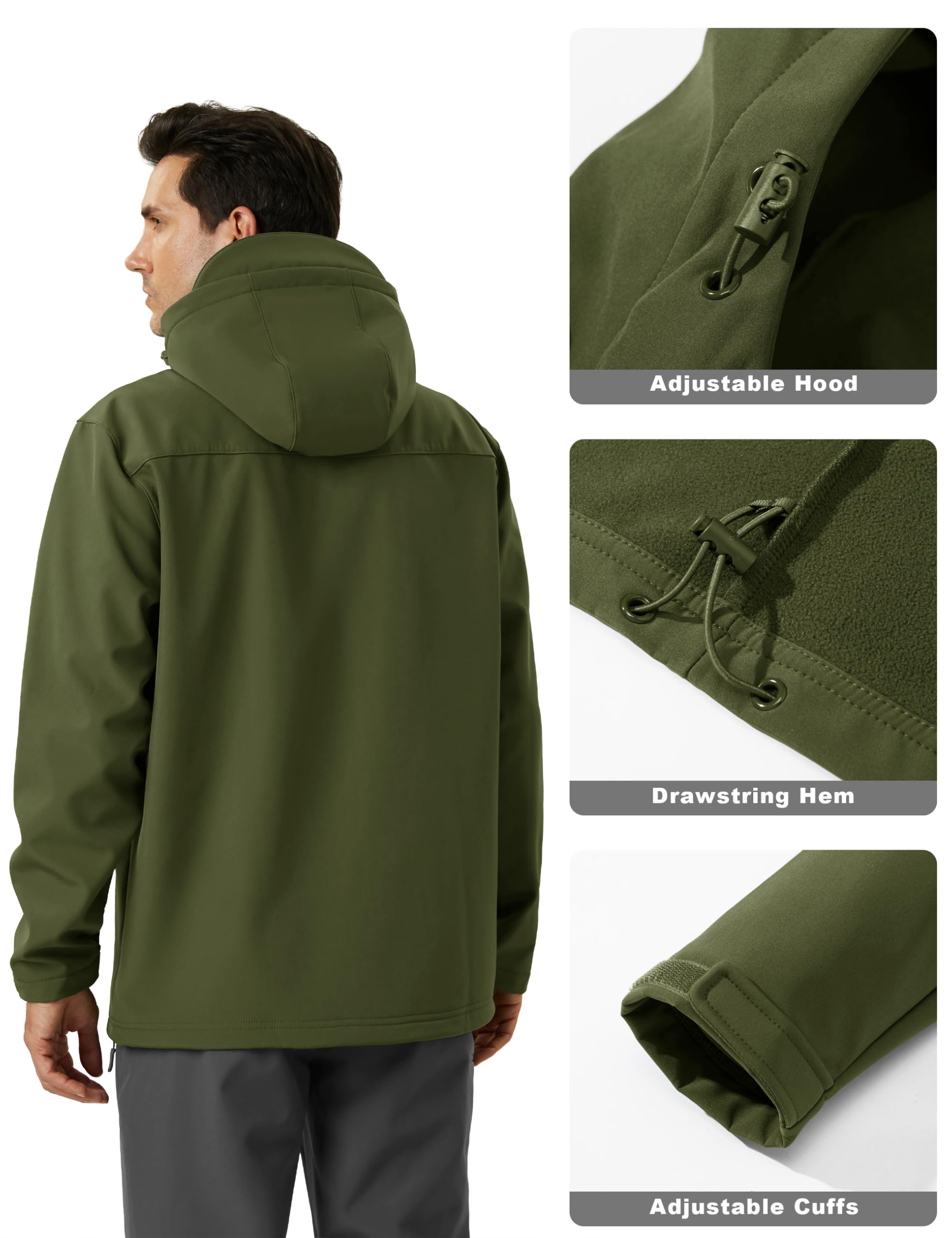 DRAWSTRING HEM - Mens outdoor jacket is designed with rainproof brim, waterproof zipper, drawstring hood, elastic hook & loop cuffs and adjustable drawstring hem for a better fit, shielding you from rain, wind and snow