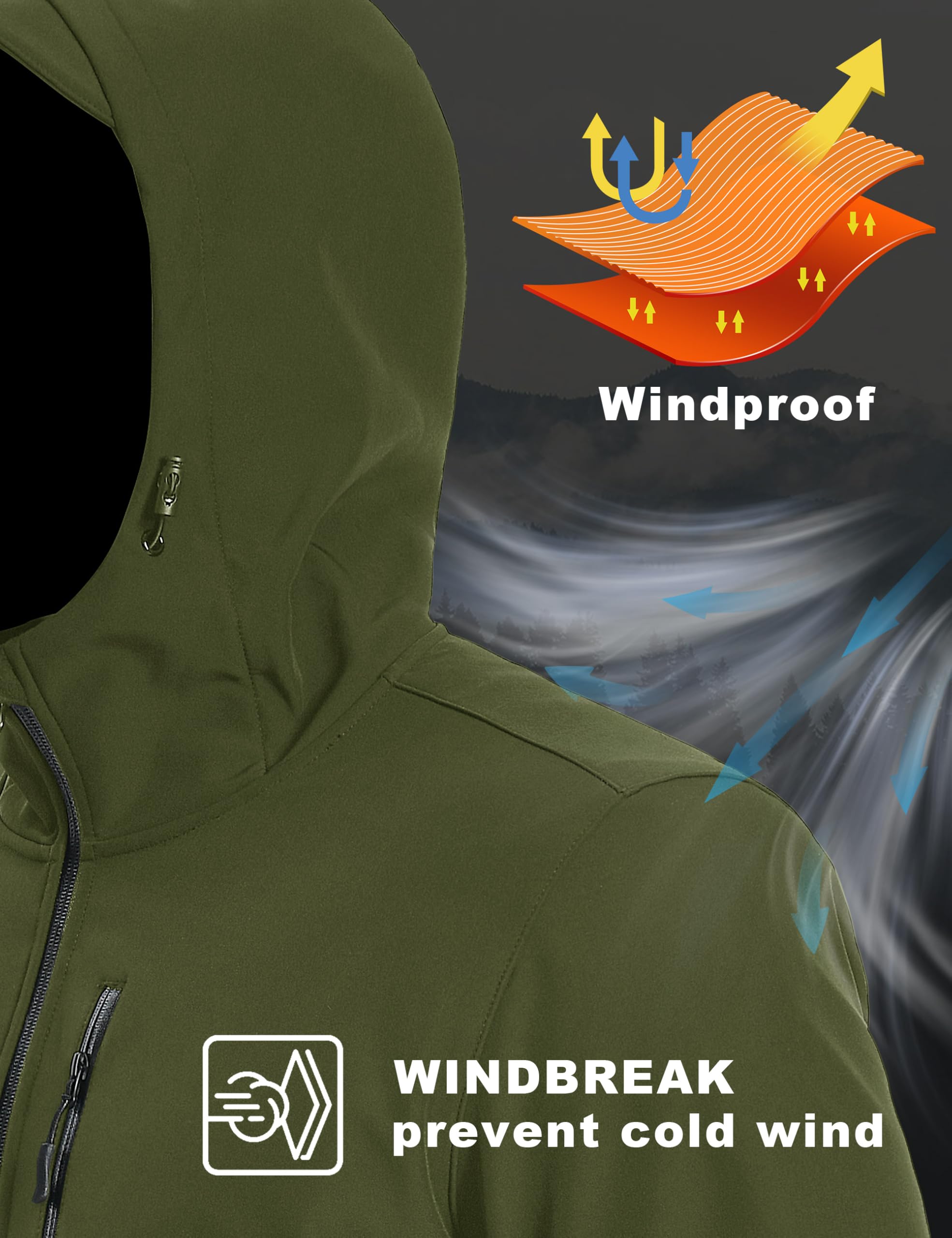 WINDBREAKER & WARM - The lightweight raincoat for men is made of windproof, high-quality soft shell fabric and thermal fleece lining, which makes the wind never get through and keep you warm all day