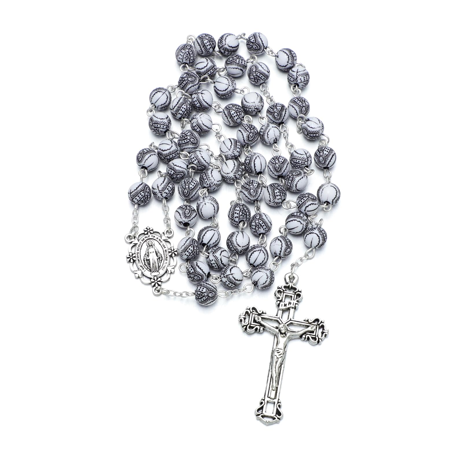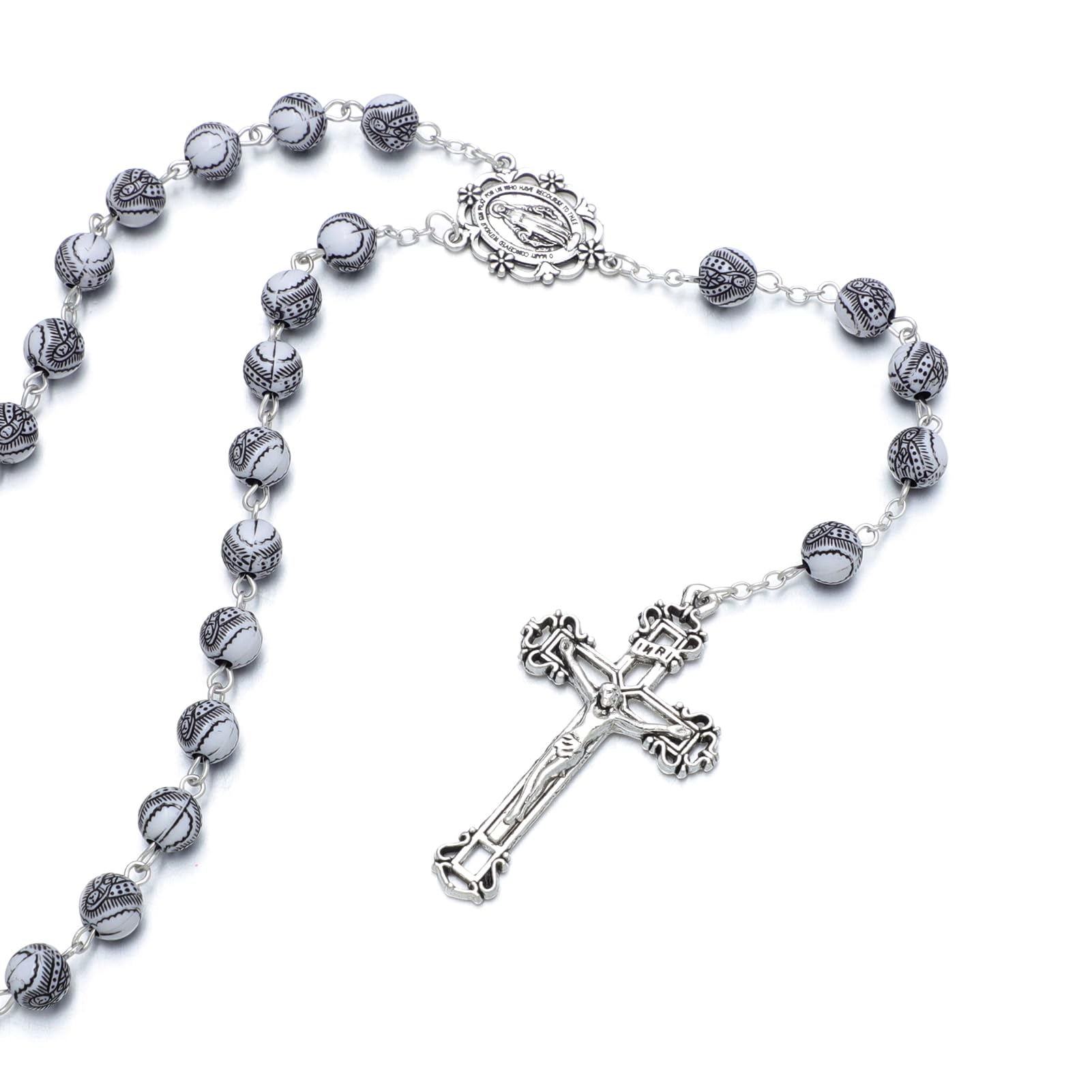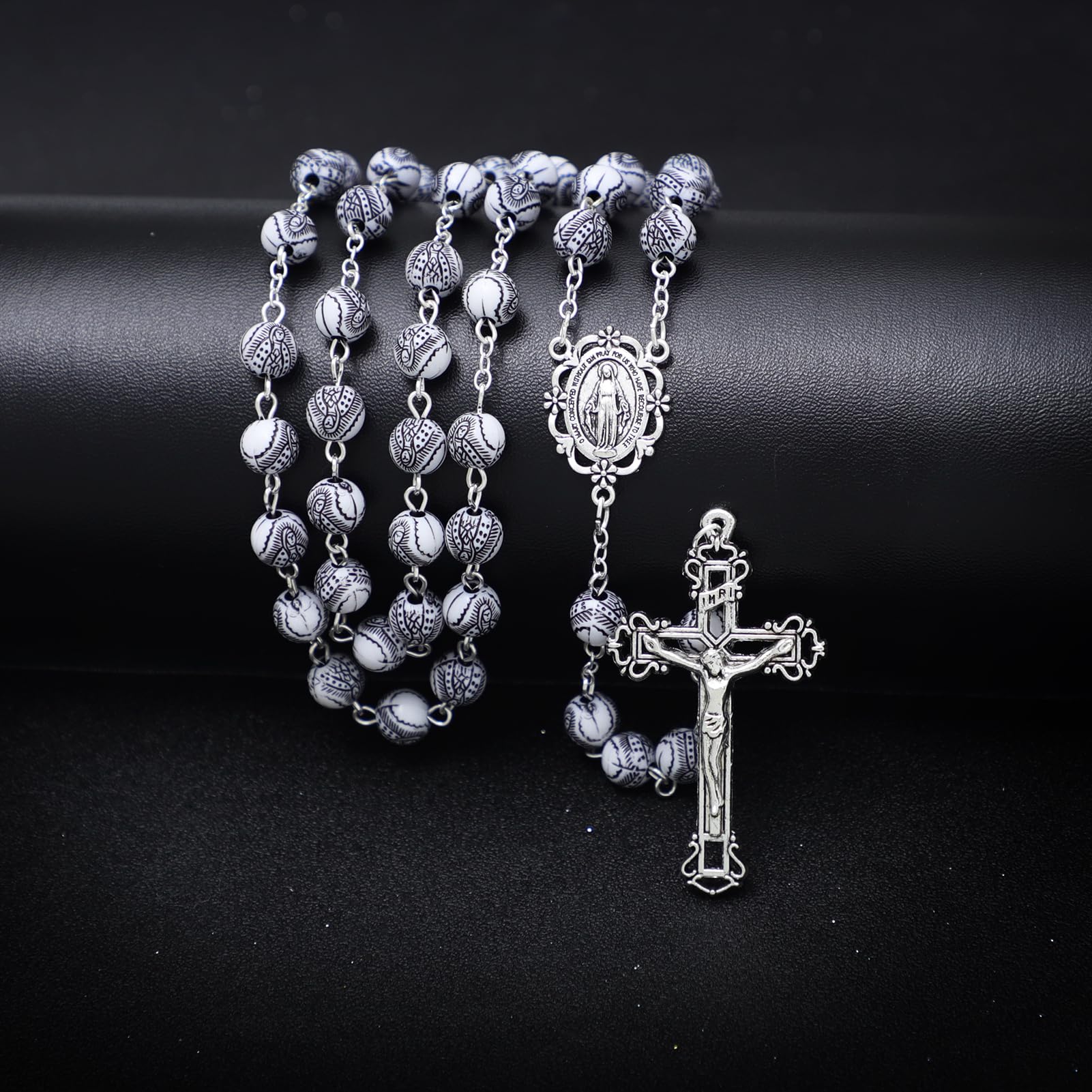 SIZE – Decades Length: 30" - Drop Length: 5.7" - Crucifix Cross: 2" x 1.2" - Plastic Beads 8mm.