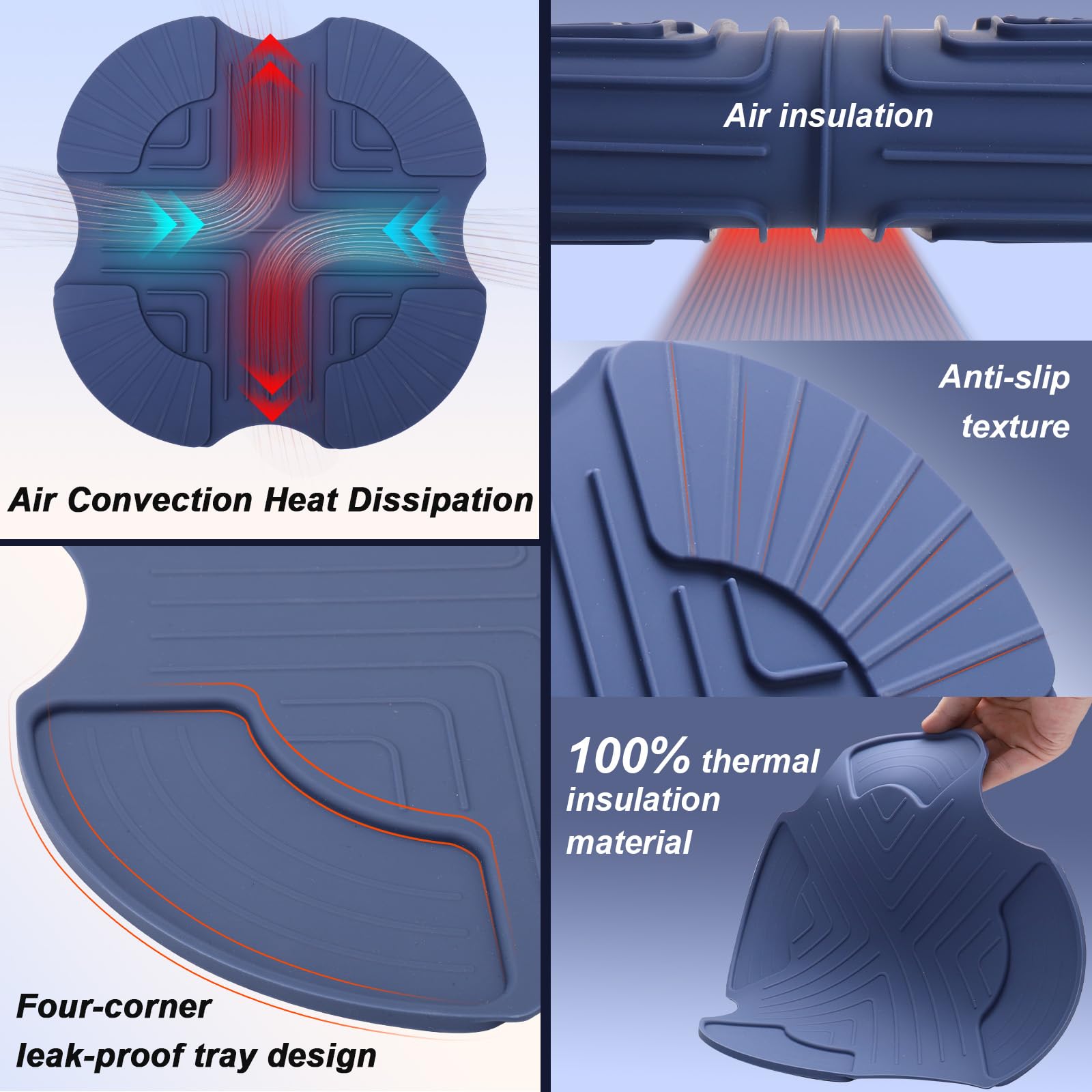 Multifunctional design: The trivet’s four corner grooves act as a tray, catching any oil splashes or liquids that may form as the air fryer cools down. The non-slip design ensures the silicone pad stays securely in place on your countertop, preventing it from sliding or falling.