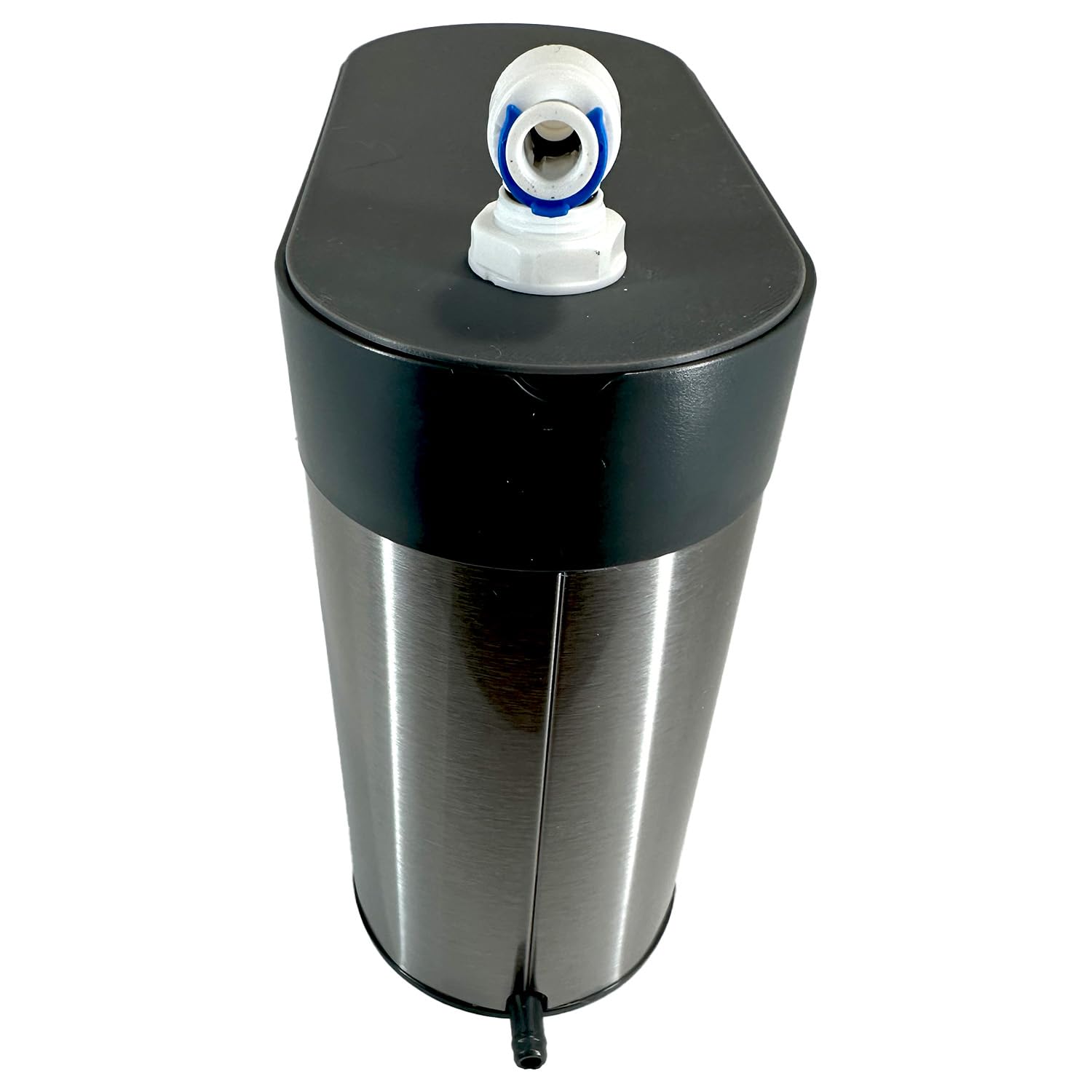 Permanent Water Line Conversion kit (tank lid and valve only, Fully assembled) for GE Profile Opal Countertop Nugget Ice Makers, tank NOT included. Please measure your side water tank for the correct size. See pictures for correct sizing With this custom water tank cover and float fill valve you can connect 1/4" water line to automatically fill the bottom half of the side water tank and never have to refill water tank again. Comes lid and float valve ONLY. Ice maker, tank and water line NOT INCLUDED. DOES NOT FIT Opal 1.0 standard 3/4 gallon water tank with the angled lid. You need 1/4 plastic water line with a shut off valve, so you can disconnect water to clean the tank. to install just remove blue tubing retainer, connect 1/4" plastic water line and replace blue tubing retainer, and turn on the water. Valve will shut off once tank is full. original designs by Chris Tracy & Davis Hartley, Redesigned manufactured and assembled by BCsystems made in the USA