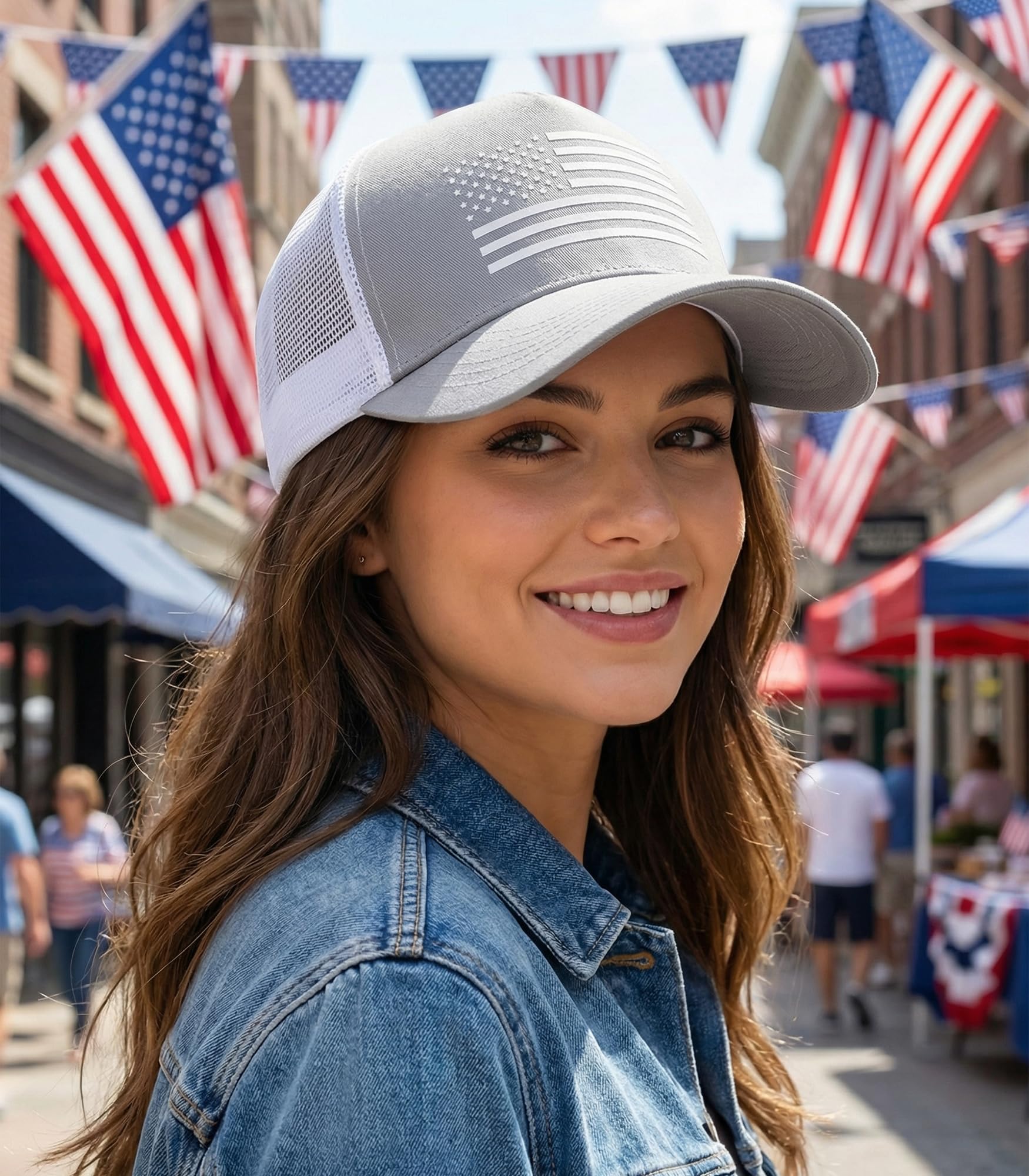 【Classic American Flag Design】 Featured with a printed blacked out American flag design. This American flag hat for men women shows great patriotism to our country