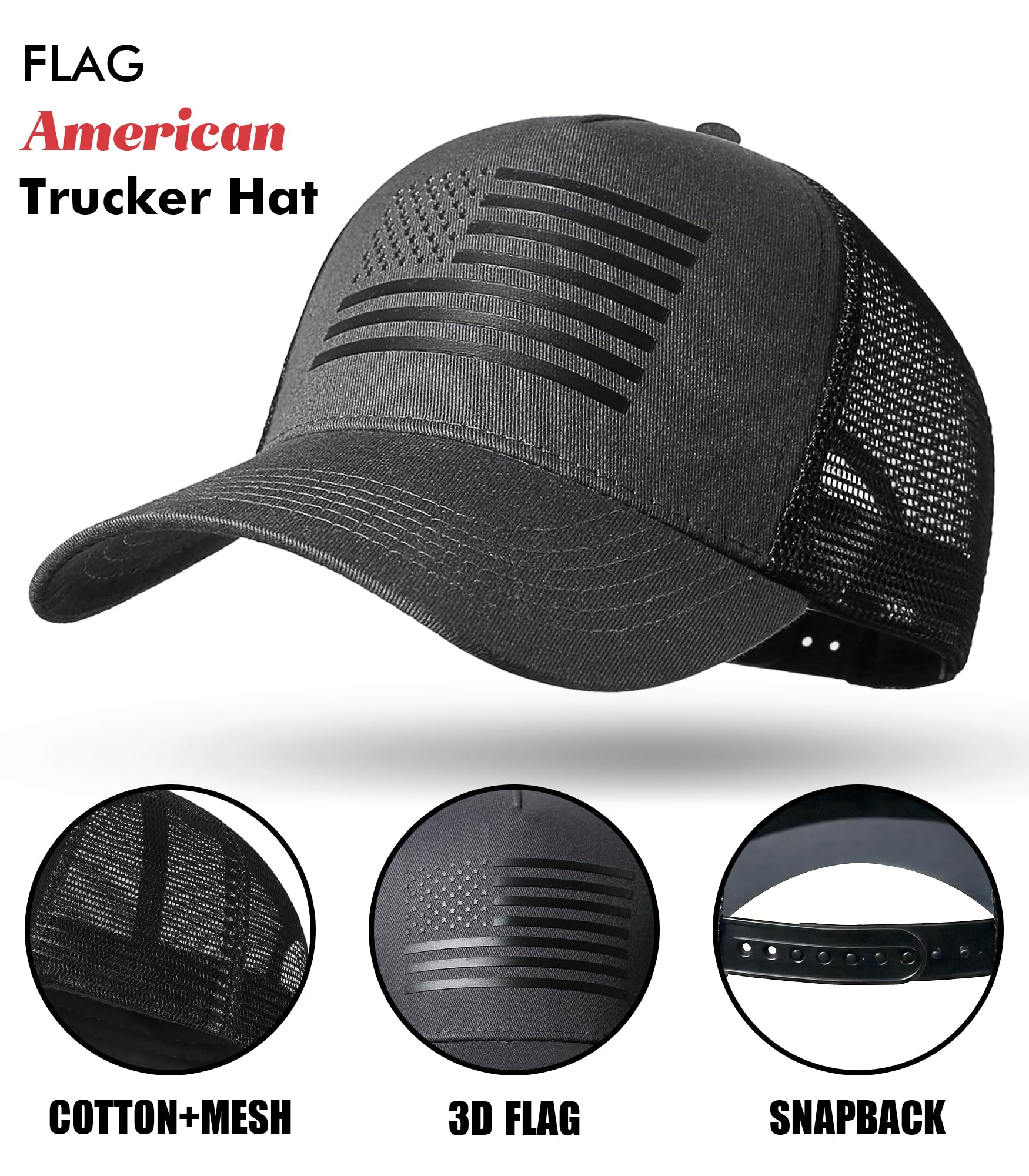 Description American Flag Trucker Hat Baseball Cap Snapback Fitted Hats for Men Women Snap Closure Design Breathable Mesh Side Durable