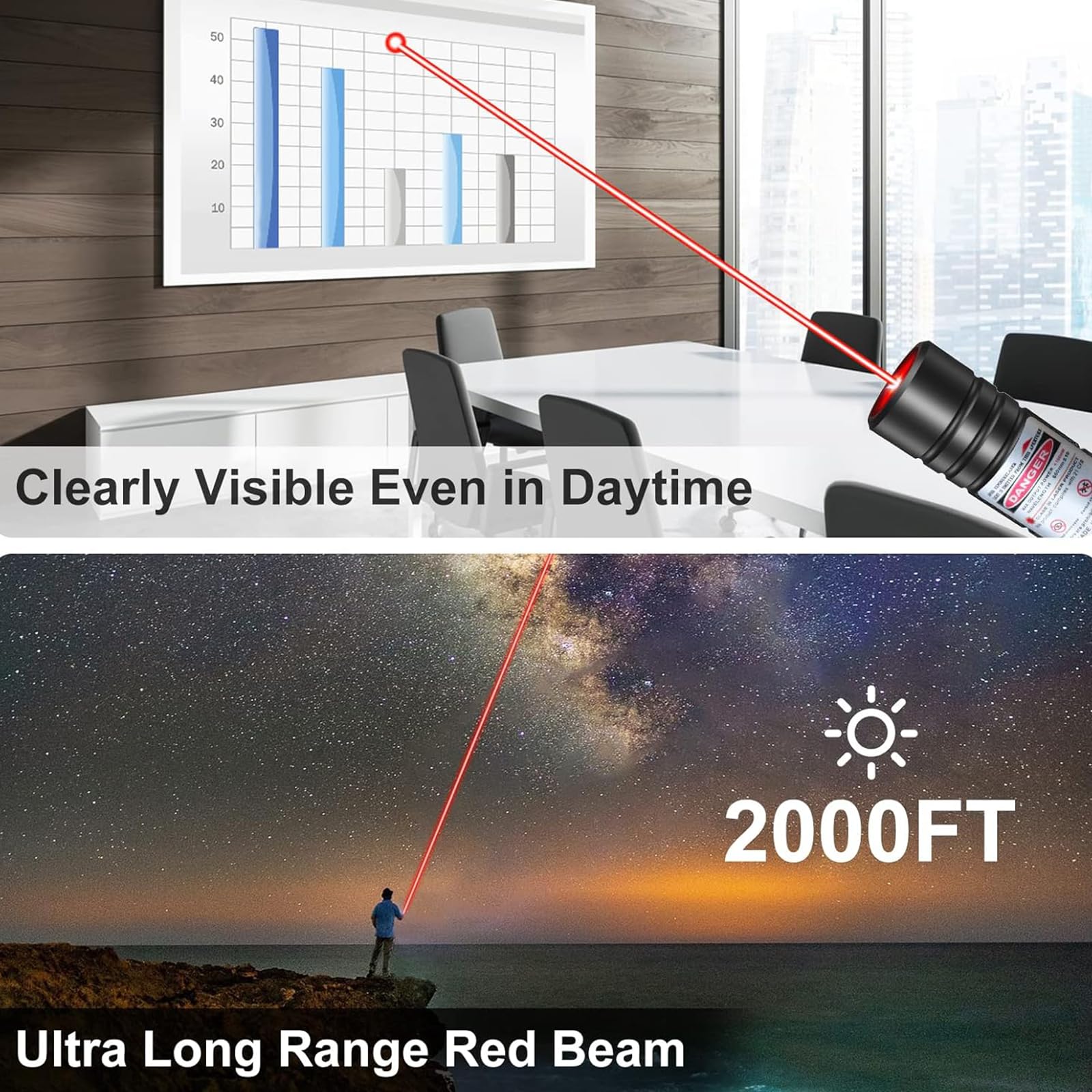 🎊【High Power Laser Pointer】: Remove the silver star cap by rotating, experience the long range laser beam. You can see the Red laser pointer high power beam trajectory is clearly whether it is day or night.