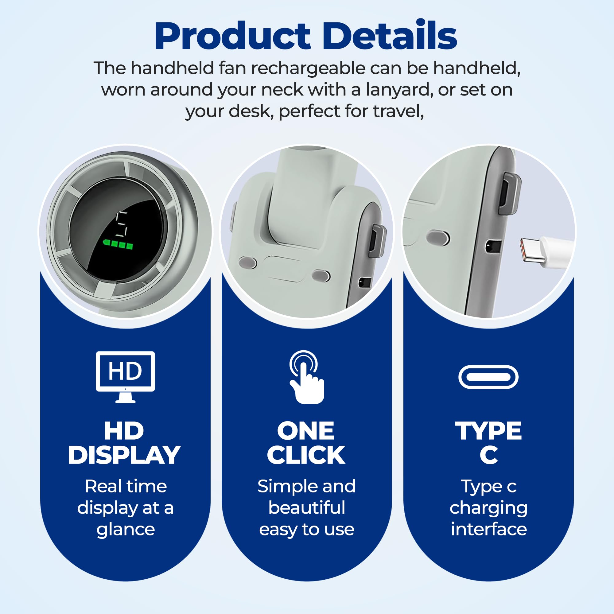 Compact & Foldable – Travel-Ready Design Weighing only 190g, this 180° foldable fan fits easily in your pocket, backpack, or purse. Includes an anti-lost lanyard for hands-free use, perfect for travel, beach trips, camping, or commutes.