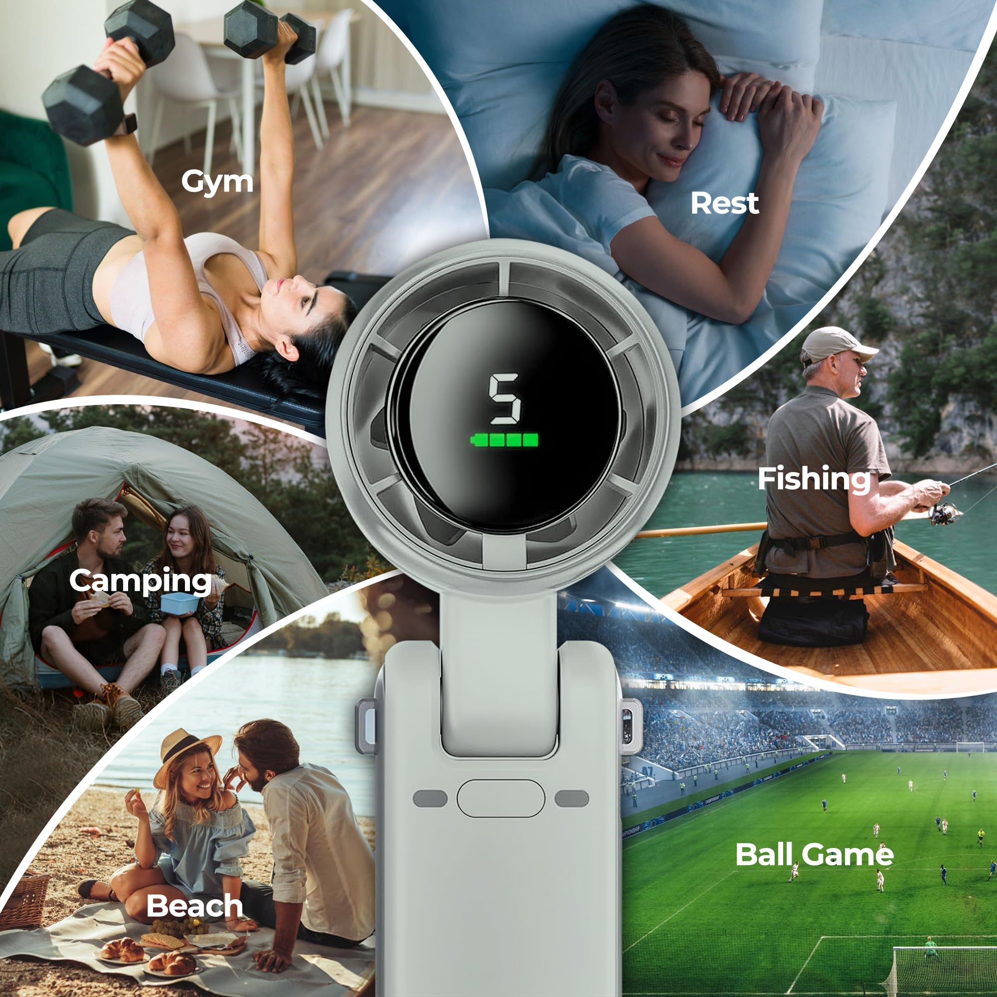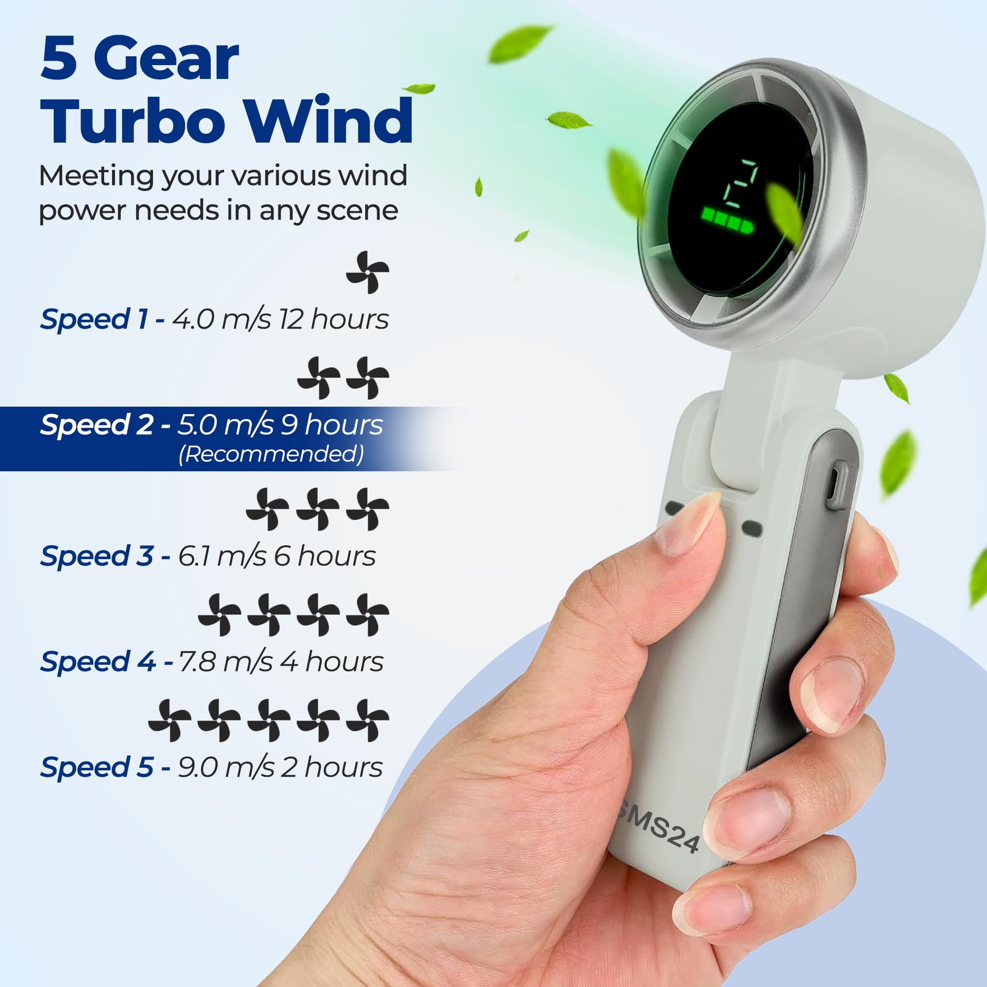 Powerful Turbo Airflow – 13,550 RPM Speed Enjoy an upgraded cooling experience with a 6-blade fan and high-speed three-phase brushless motor. Delivers up to 10m/s wind speed—3x stronger than standard handheld fans—ideal for hot weather and outdoor use.