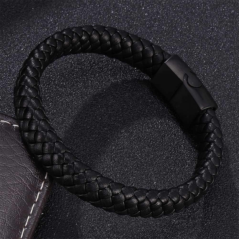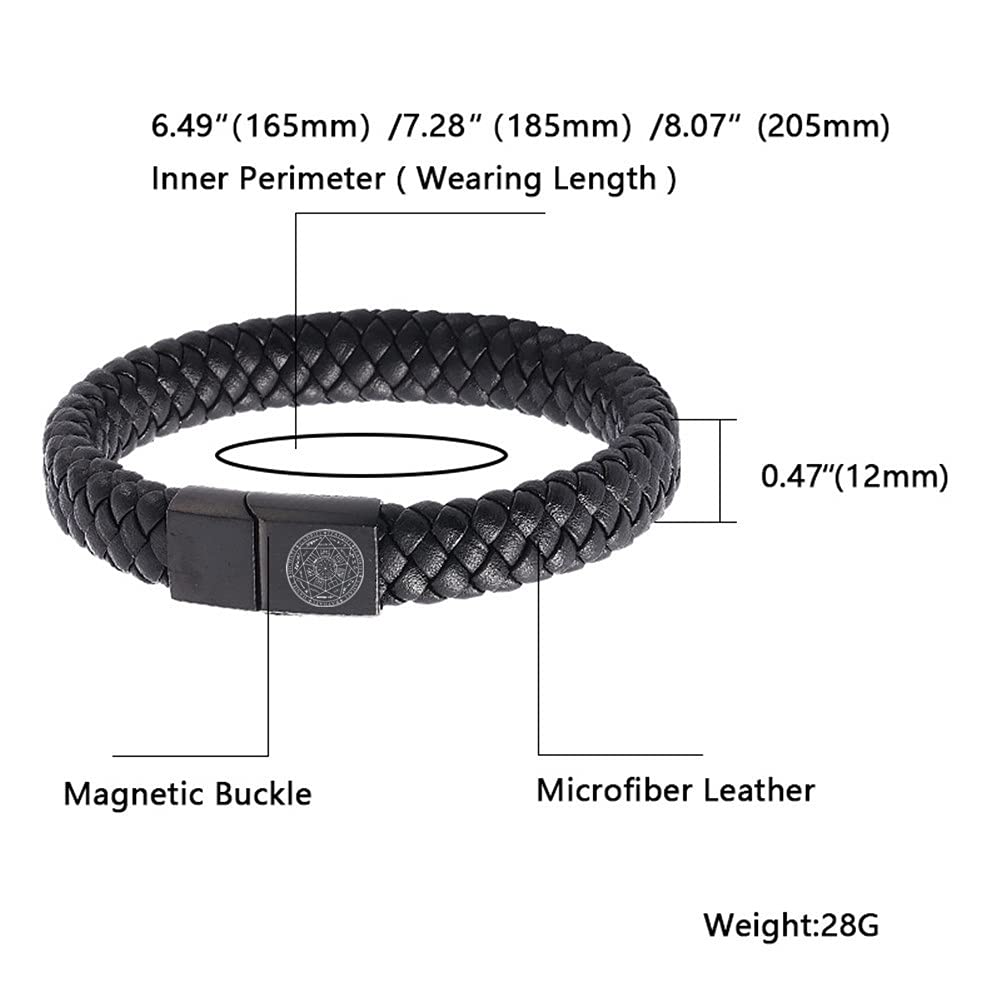 1.Material: Durable Stainless Steel +Braided Wrap Leather, Closure, Classic Black, 2 Lengths: 18.5cm and 20.5cm, Fits for Young Adults and Adults, Comfort Fit in Person